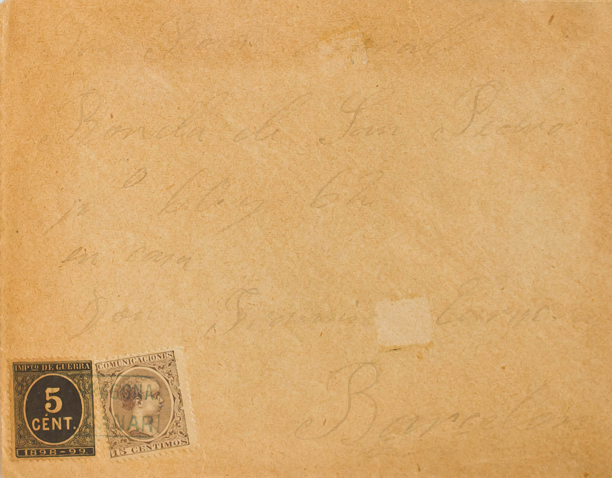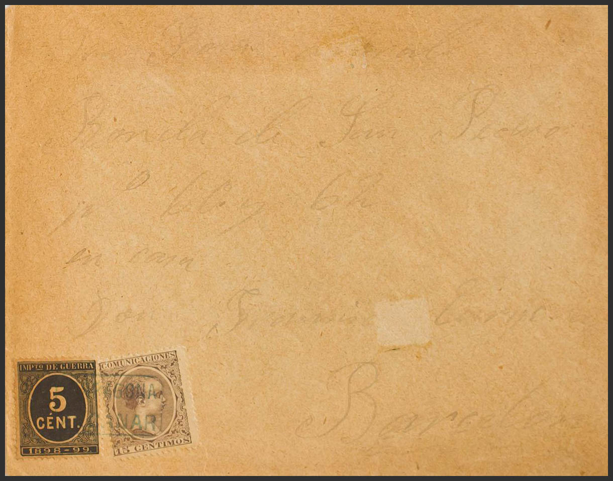 219, 236. (1900ca). 15 cts and 5 cts. ALCANAR (TARRAGONA) to BARCELONA (cover with normal conservation). Postmark TARRAGONA / ALCANAR, in blue. MAGNIFICENT.