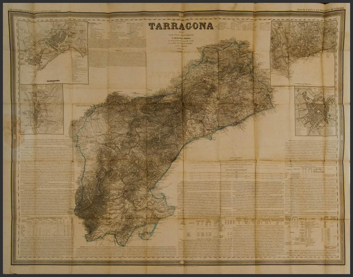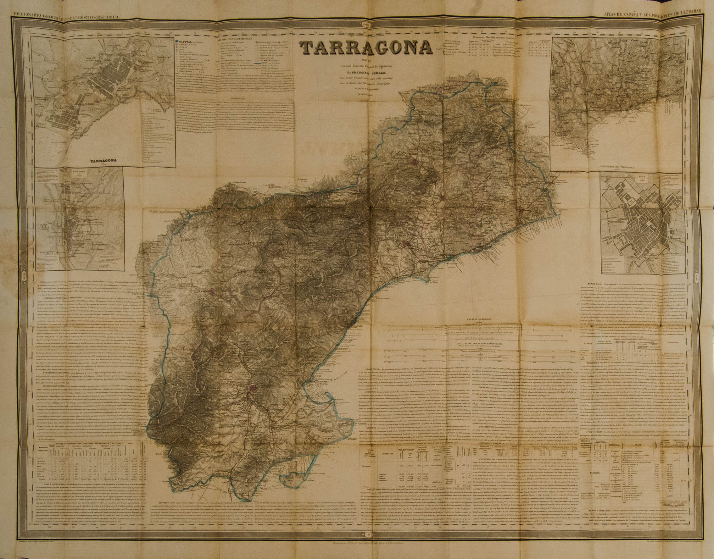 1858. ATLAS OF SPAIN AND ITS OVERSEAS POSSESSIONS, Francisco Coello. Corresponding to the province of TARRAGONA and in the hardcover edition of 1853 (map and folder), historical, administrative data, etc. and the plans of the largest cities in the province at that time are included. MAGNIFICENT AND UNUSUAL MAP OF THE PERIOD OF ISABEL II, WHICH INCLUDES ALL THE POST ROUTES OF THE PERIOD, IDEAL FOR THE STUDY OF THE POSTAL HISTORY OF THE COLLECTOR OF THIS REGION, THIS WORK HAS ALWAYS BEEN PRESENT IN THE GREAT SPANISH PHILATELIC LIBRARIES SUCH AS THOSE OF MONGE, CLIMBING, TIZON, GALVEZ. Ex-GRAUS.