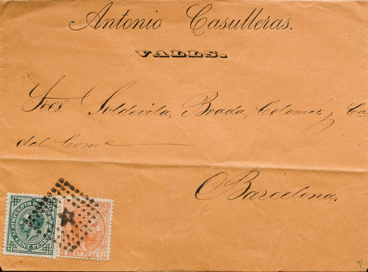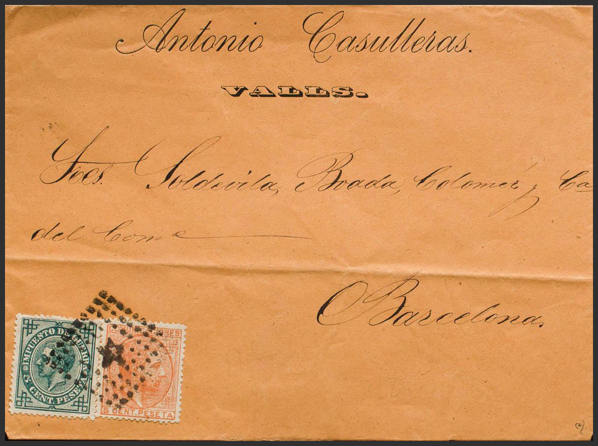 191, 183. (1878ca). 5 cts orange and 5 cts green. VALLS to BARCELONA. MAGNIFICENT. Ex-Blight.