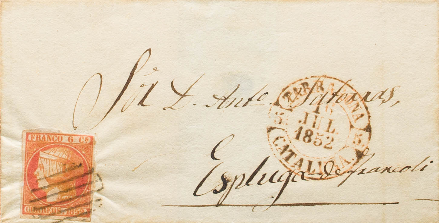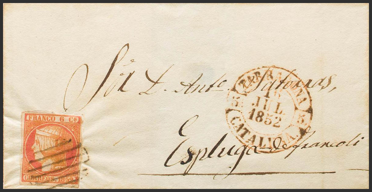 12. 1852. 6 cuartos pink. TARRAGONA to ESPLUGA DE FRANCOLI. On the baeza front TARRAGONA / CATALONIA. MAGNIFICENT. Ex-Blight.