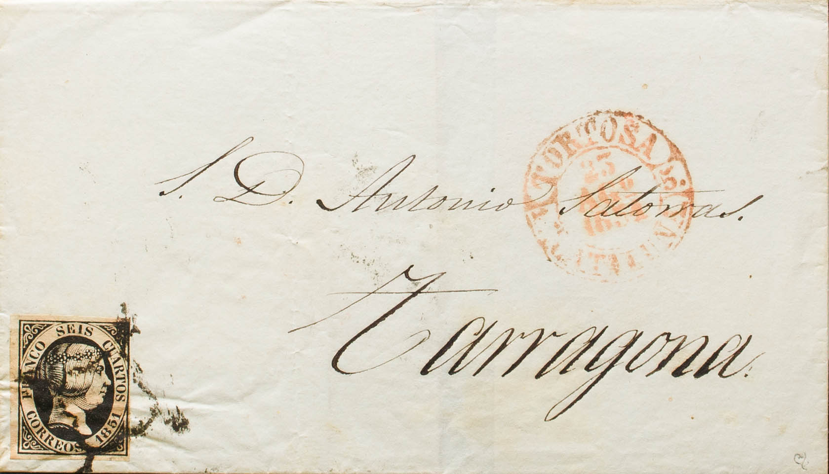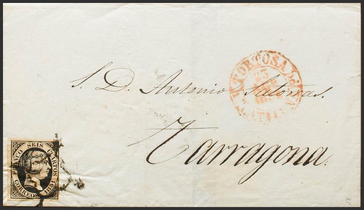 6. 1851. 6 cuartos black. TORTOSA to TARRAGONA. In the front baeza TORTOSA / CATALONIA. MAGNIFICENT. Ex-Blight.