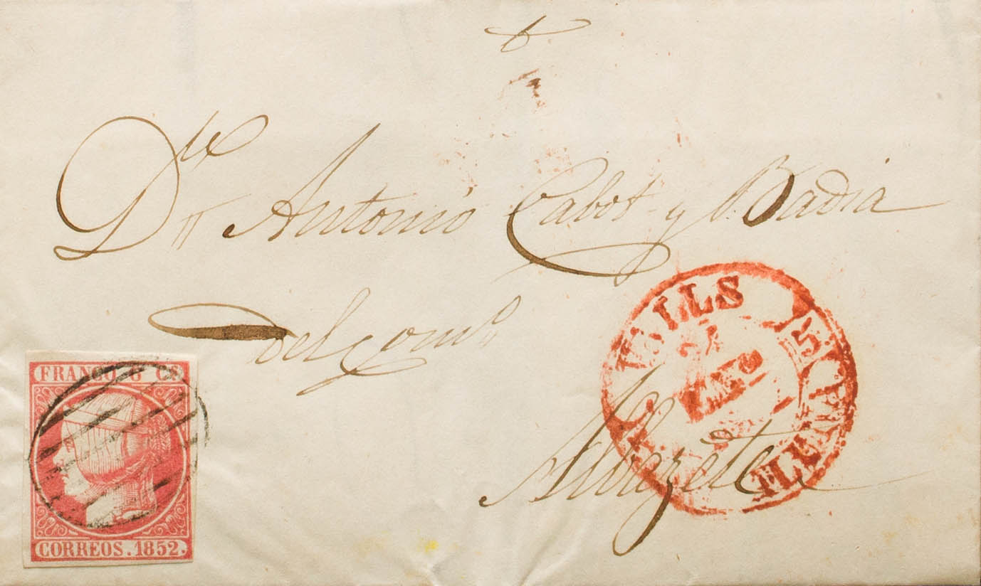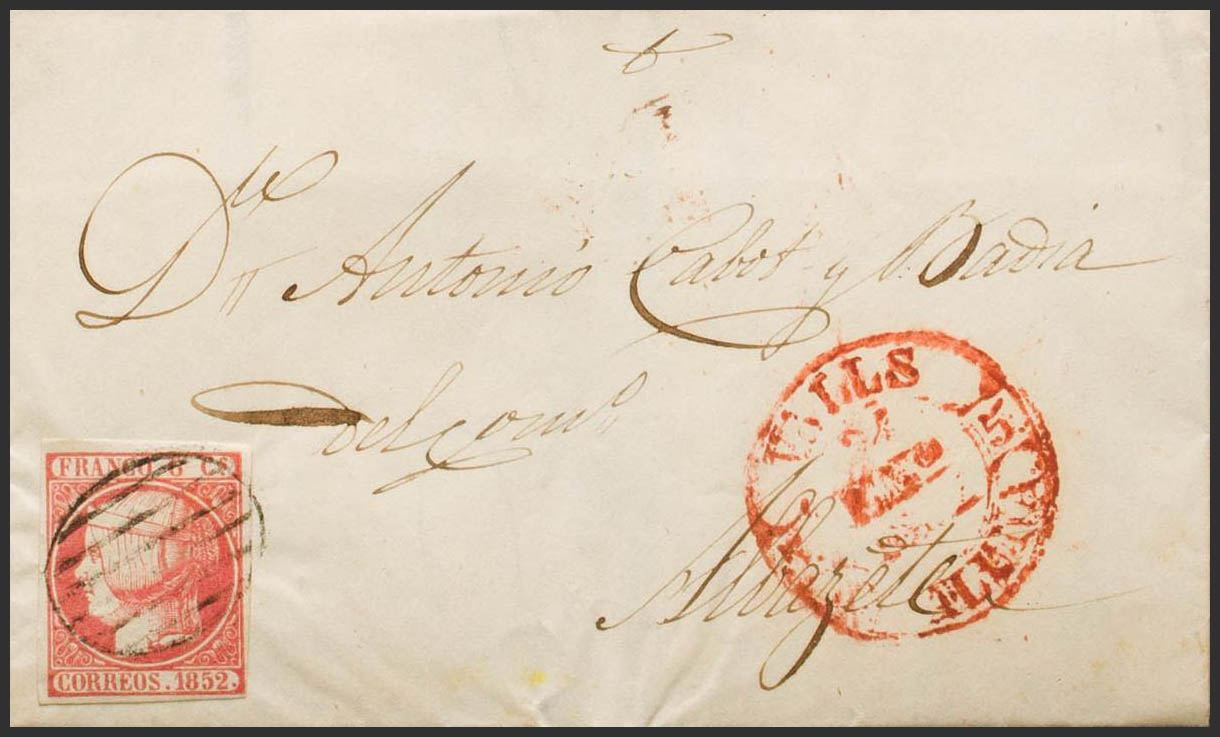 12. 1852. 6 cuartos pink. VALLS to ALBACETE. Postmark VALLS / CATALONIA. MAGNIFICENT. Ex-Blight.