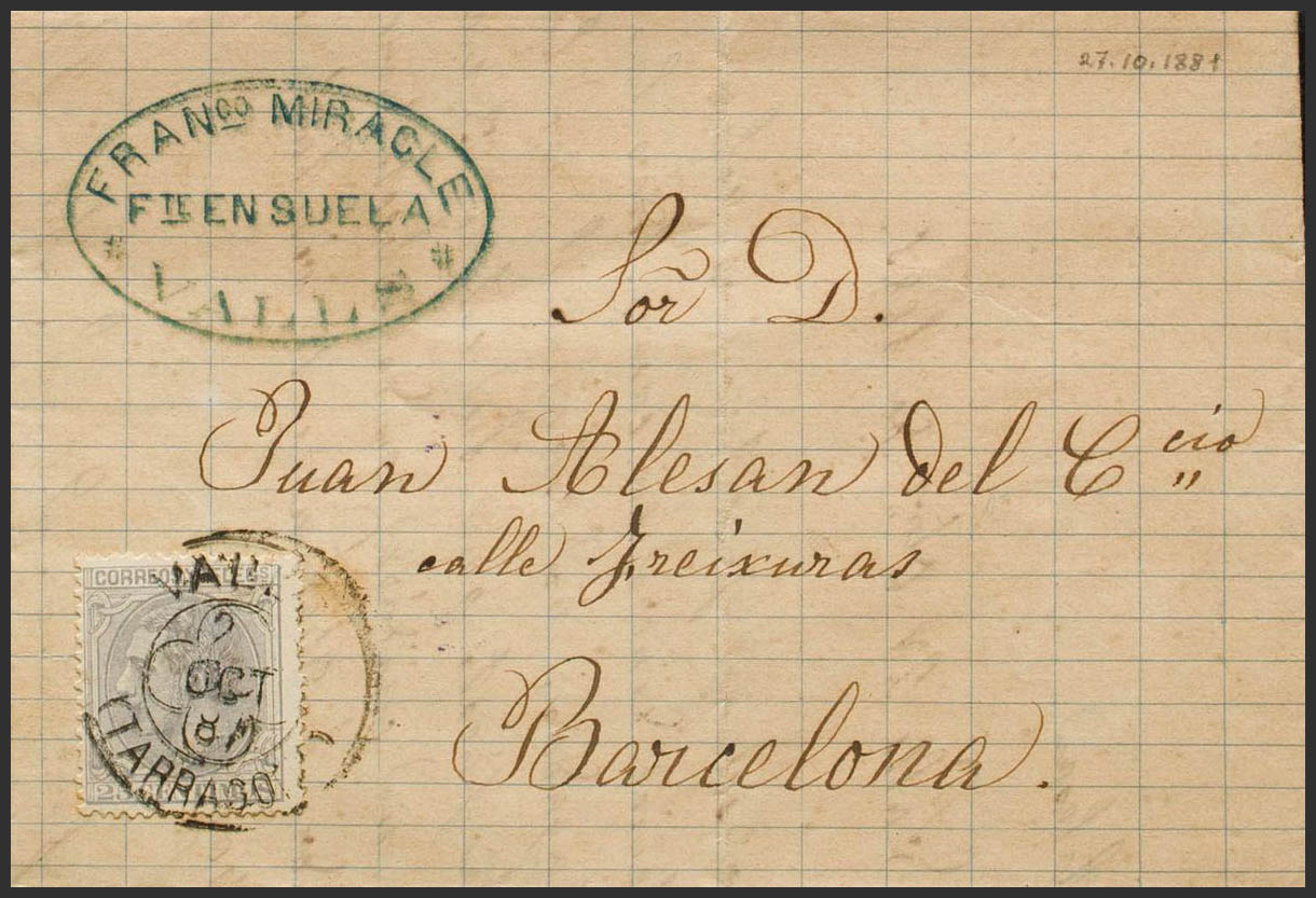 204. 1881. 25 gray cts. VALLS to BARCELONA. Clover postmark VALLS / (TARRAGONA). MAGNIFICENT. Ex-Blight.