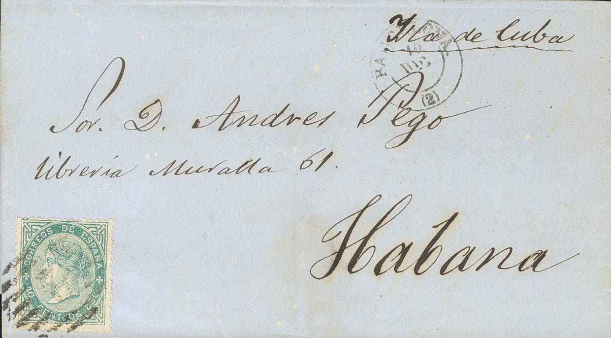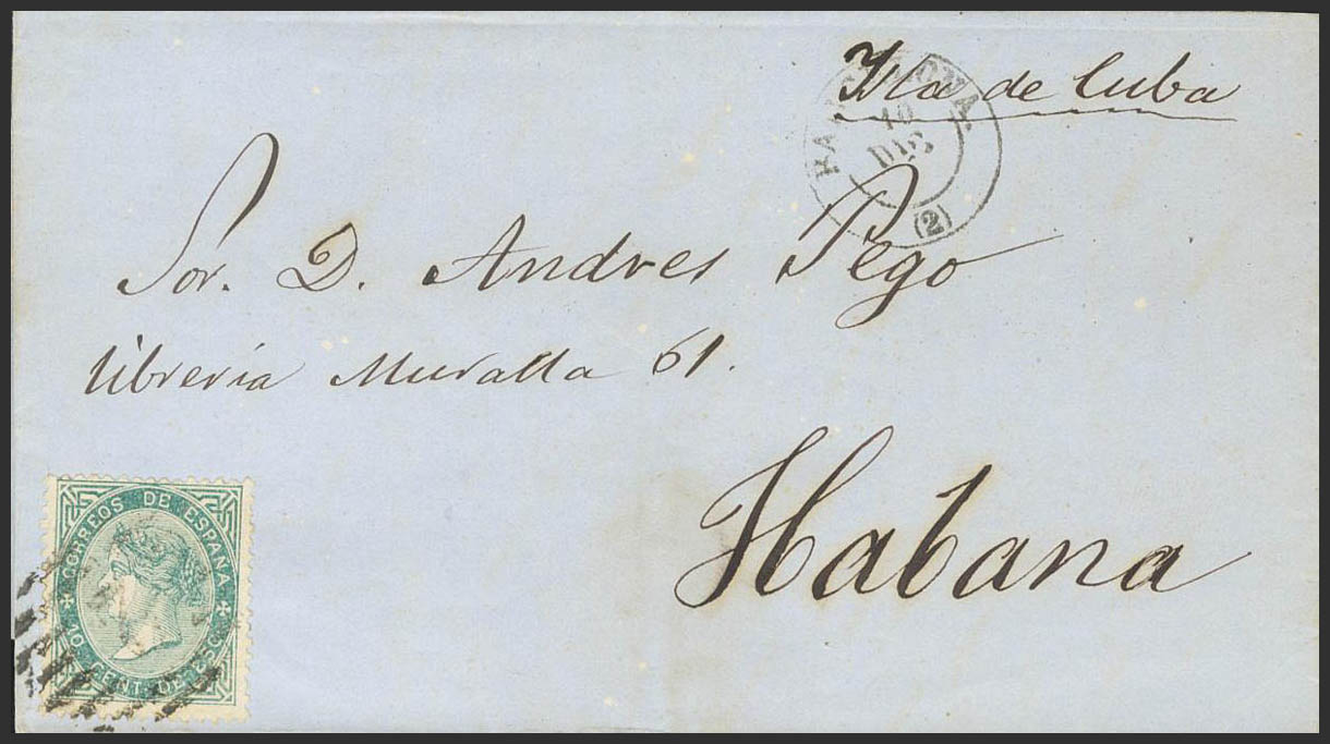 91. (1867ca). 10 cts green. BARCELONA to HAVANA. MAGNIFICENT AND VERY SPECTACULAR.