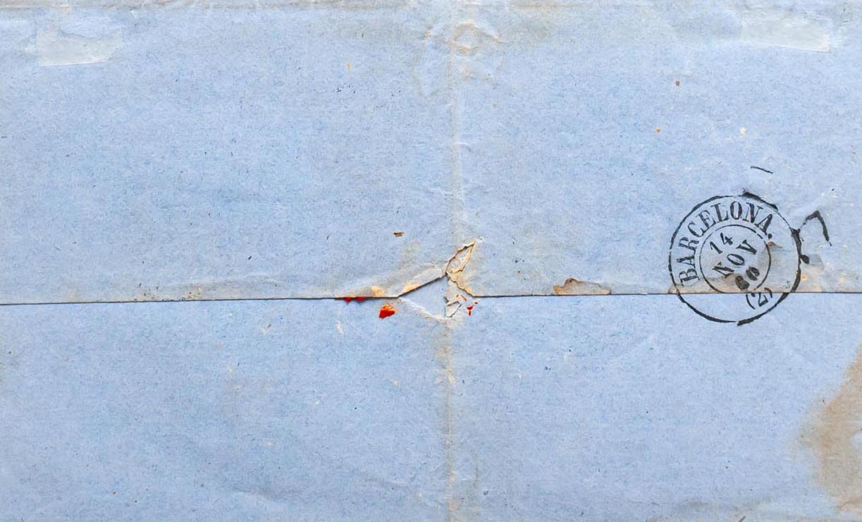52. 1860. 4 cuartos yellow. GERONA to BARCELONA. Postmark R.CARRETA Nº26, from Gerona. MAGNIFICENT AND SPECTACULAR.