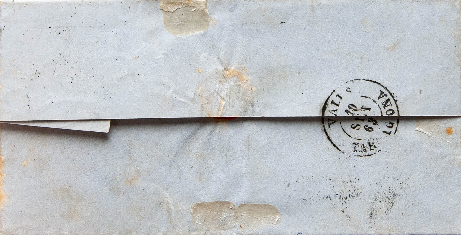 58. 1863. 4 cuartos chestnut. BARCELONA to VALLS. Mixed postmark R.CARRETA Nº2 and date stamp BARCELONA / (2). MAGNIFICENT.