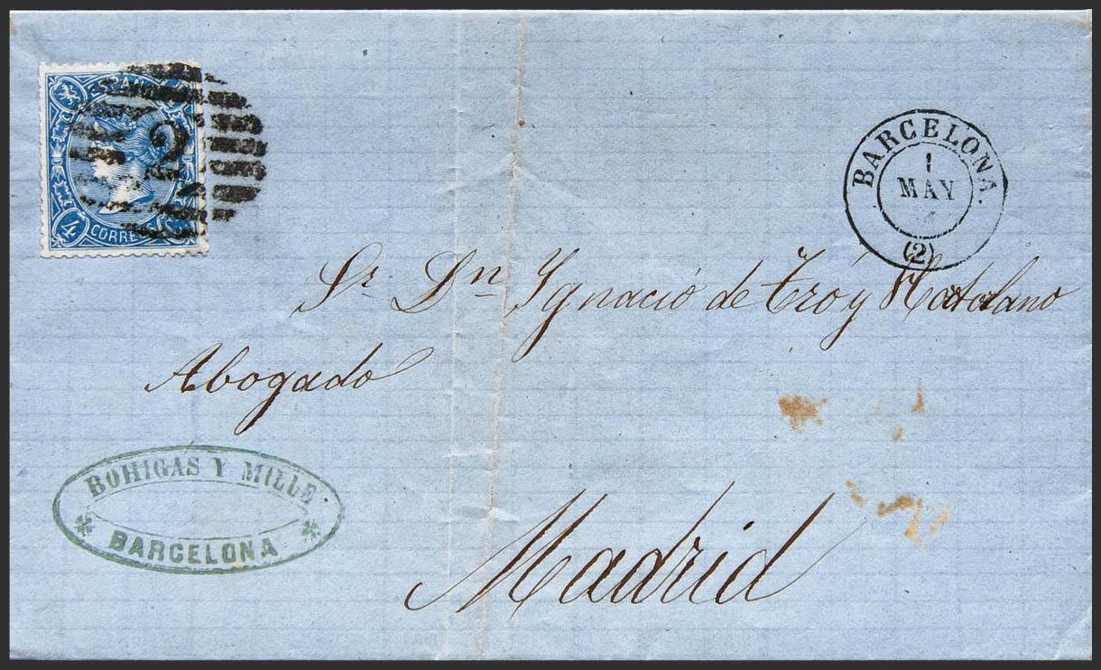 English Catalonia. Postal History. GRILL WITH Nº2, from Barcelona. MAGNIFICENT.