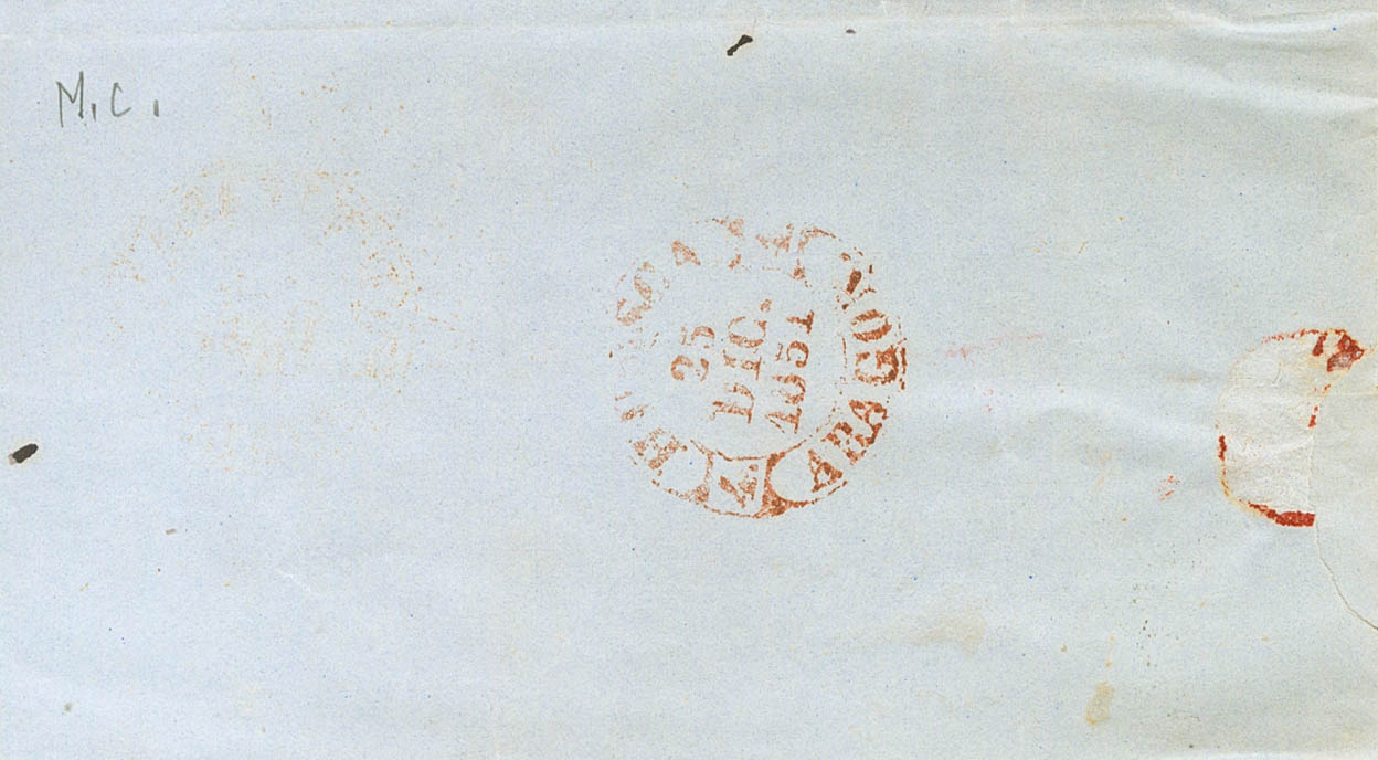 |ABOUT| 6. 1851. 6 black quarters. IGUALADA to HUEUncirculatedA. On the front Baeza IGUALADA / CATALONIA, in red. MAGNIFICENT.