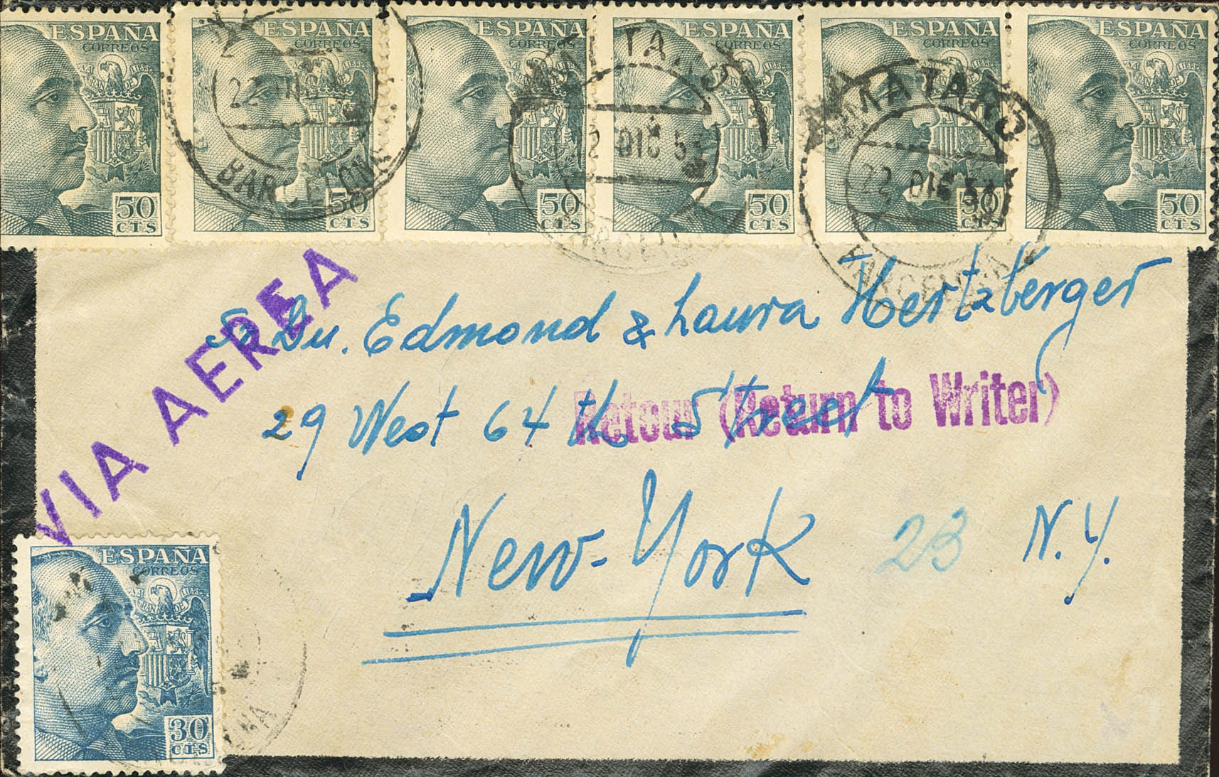 Catalonia. Postal History. MATARO / BAGoodELONA, arrival on the back. MAGNIFICENT.