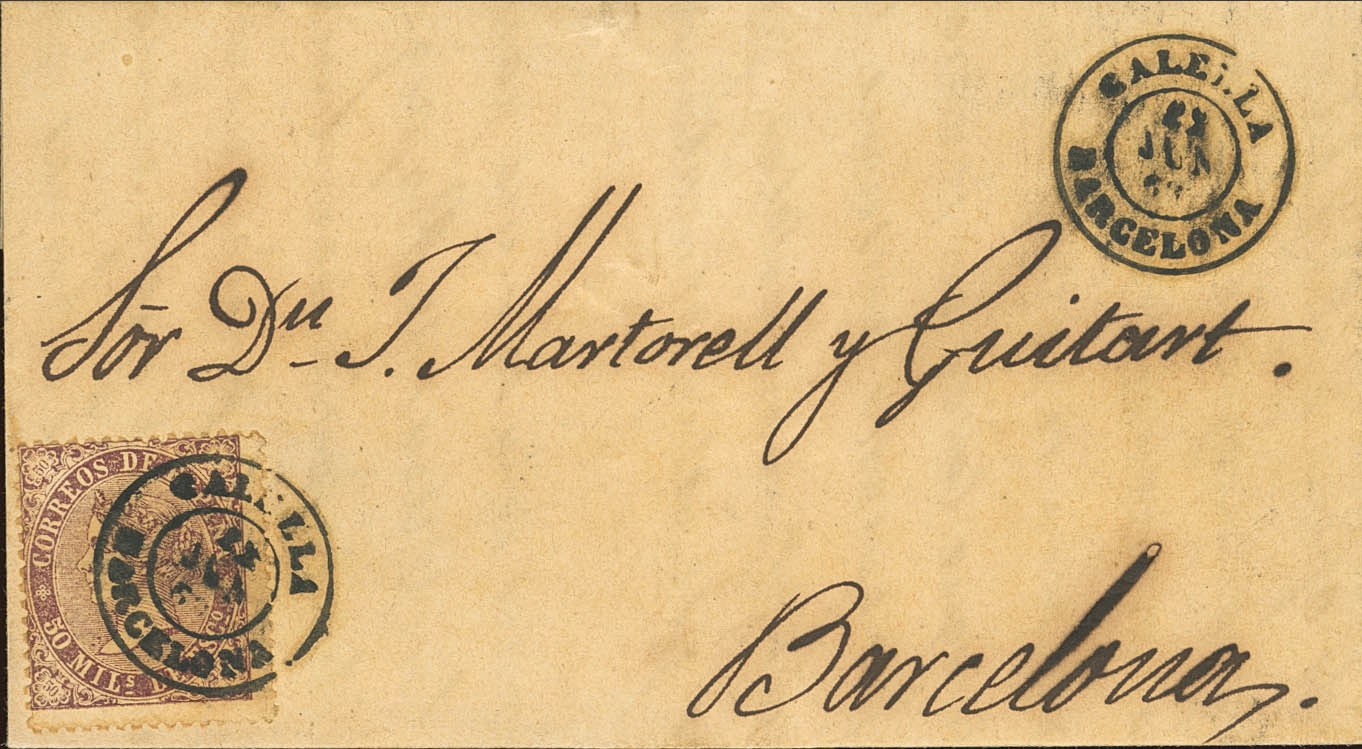 Catalonia. Postal History. CALELLA / BAGoodELONA. MAGNIFICENT.