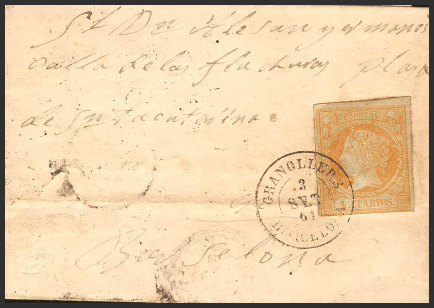 52. 1961. 4 orange cuartos . GRANOLLERS to BARCELONA. Postmark GRANOLLERS / BARCELONA. MAGNIFICENT.