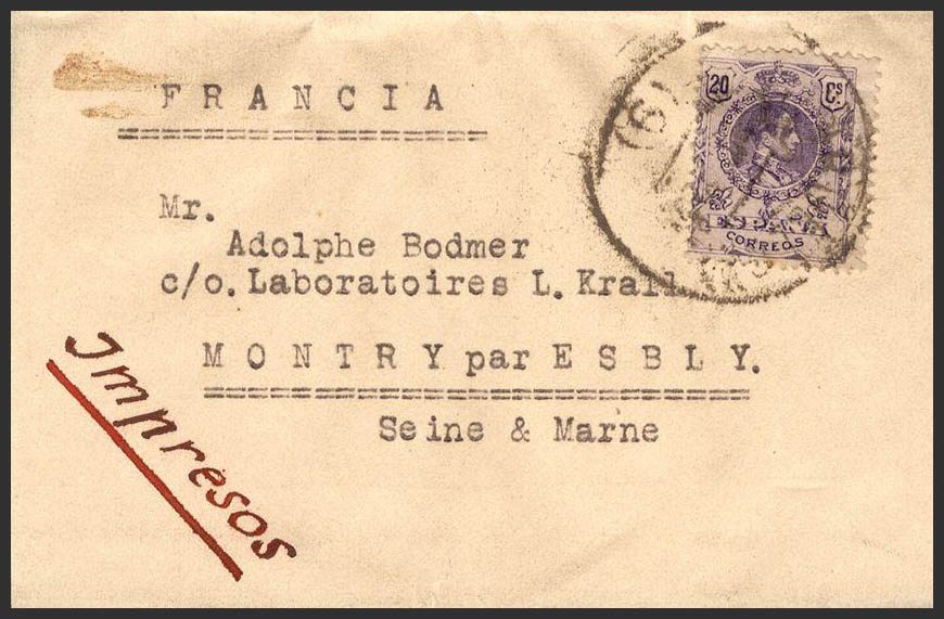 273. 1909. 20 cts Violet. Newspaper strip from BARCELONA to SEINE-MARNE (FRANCE). MAGNIFICENT.