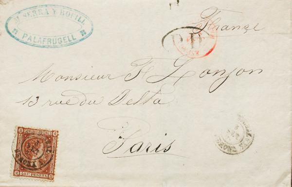 167. 1875. 40 chestnut cts. PALAFRUGELL to PARIS (FRANCE). Postmark LA BISBAL / GERONA. MAGNIFICENT. Ex-Blight.