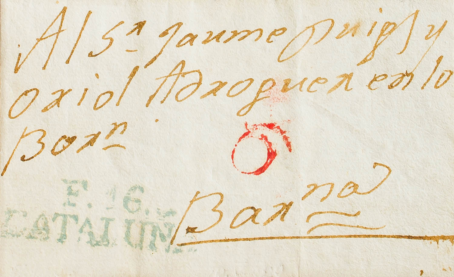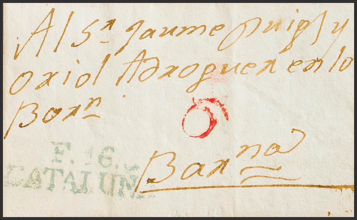 1829. FIGUERAS to BARCELONA. Mark F. 16. / CATALUÑA, in green (PE15) 2004 edition. MAGNIFICENT AND RARE.