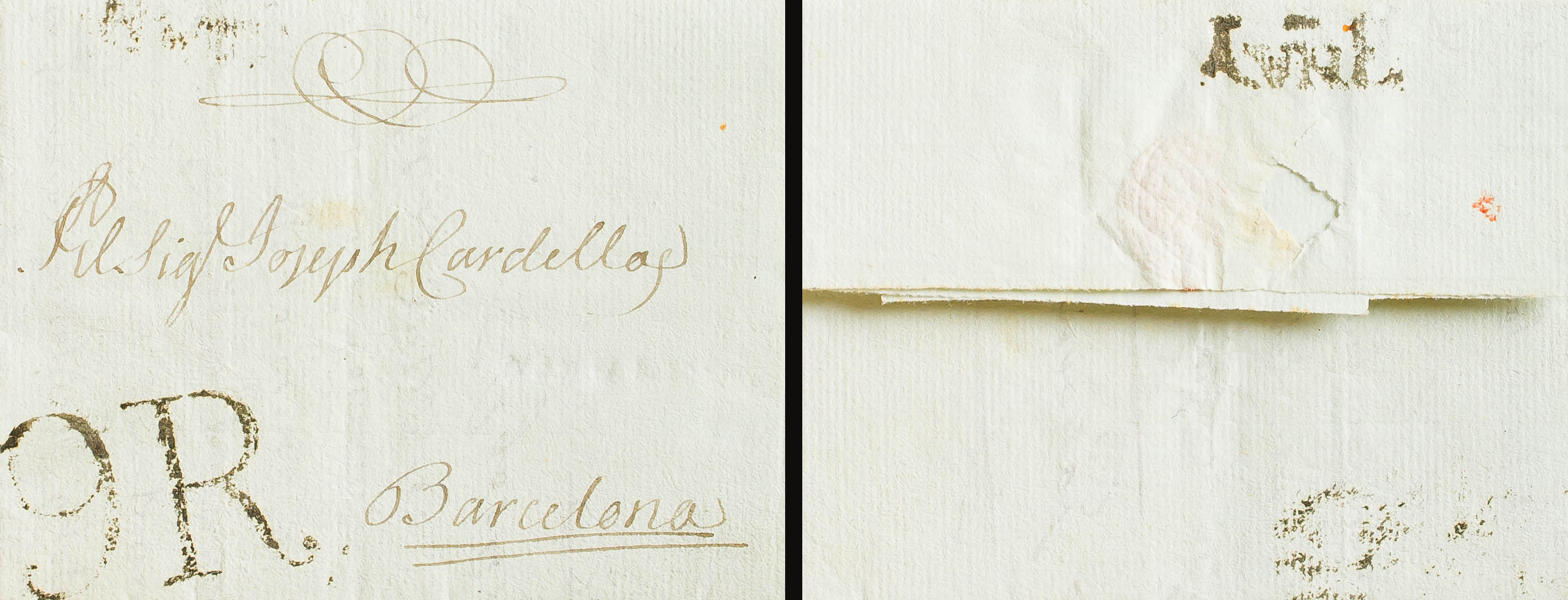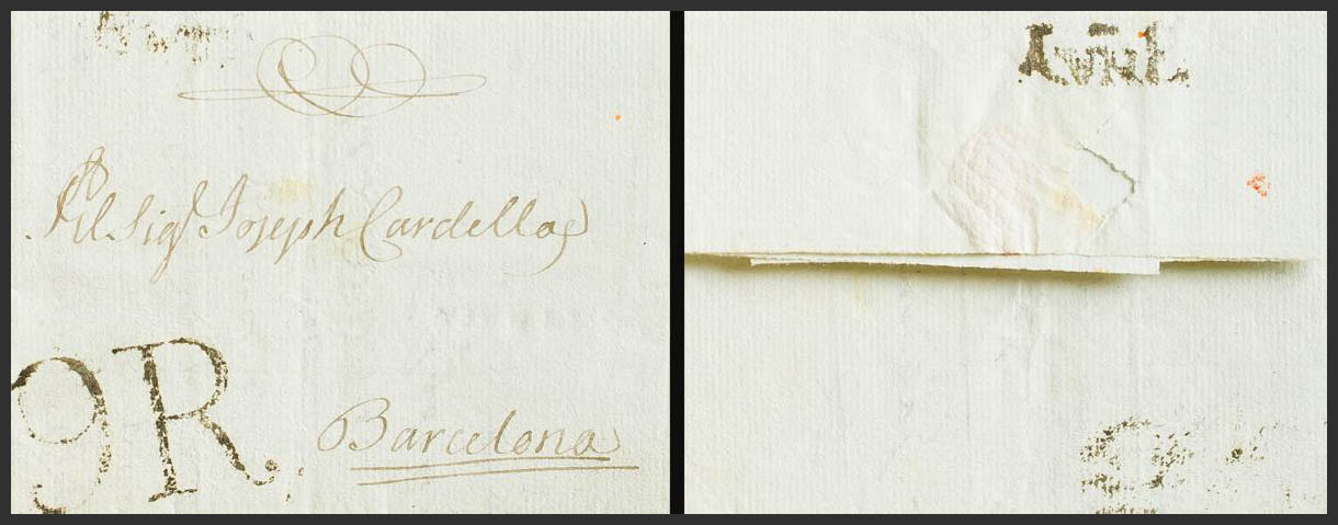 1805. GENOA (ITALY) to BARCELONA. Intervention mark BNªY, on the back (PE73) 2004 edition. MAGNIFICENT AND RARE.