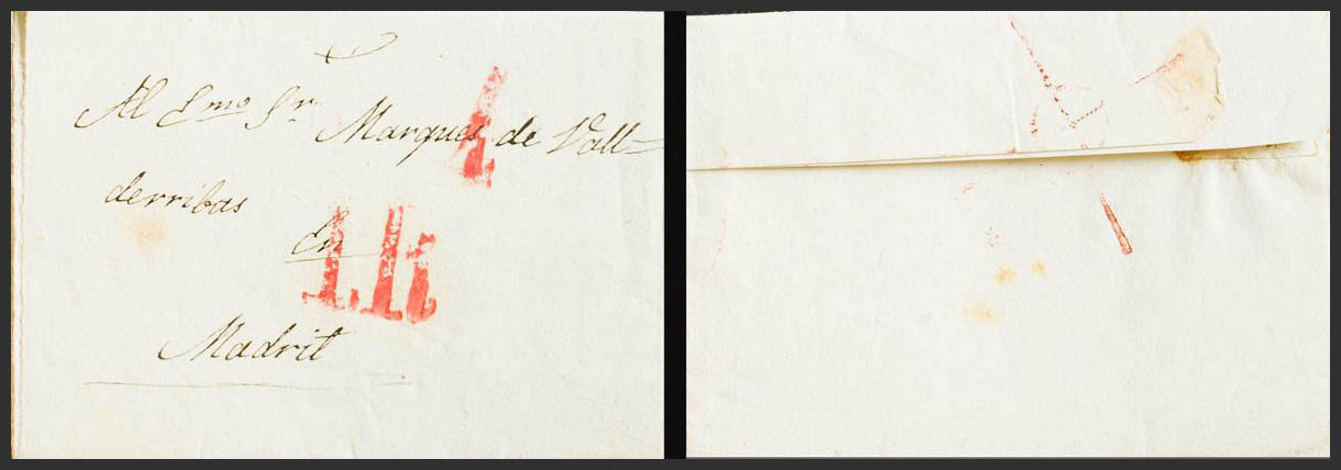 English 1845. PALAU SOLITA (BARCELONA) to MADRID. CRUZ brand, on the back and applied in transit in Barcelona (PE77) 2004 edition. MAGNIFICENT.