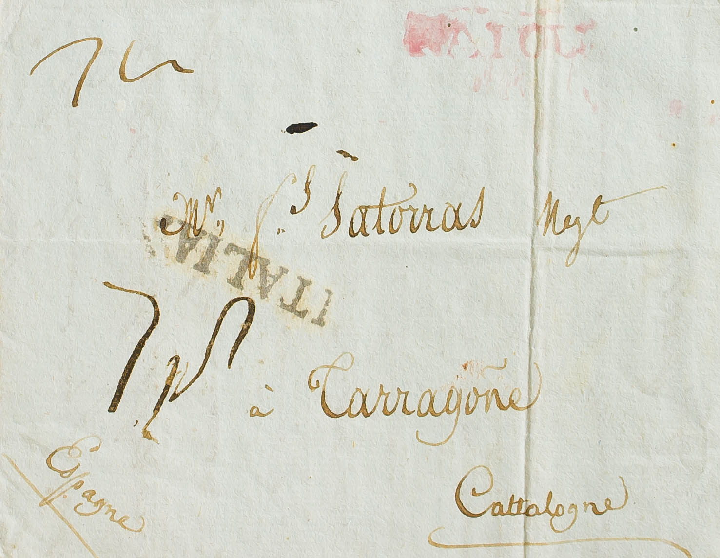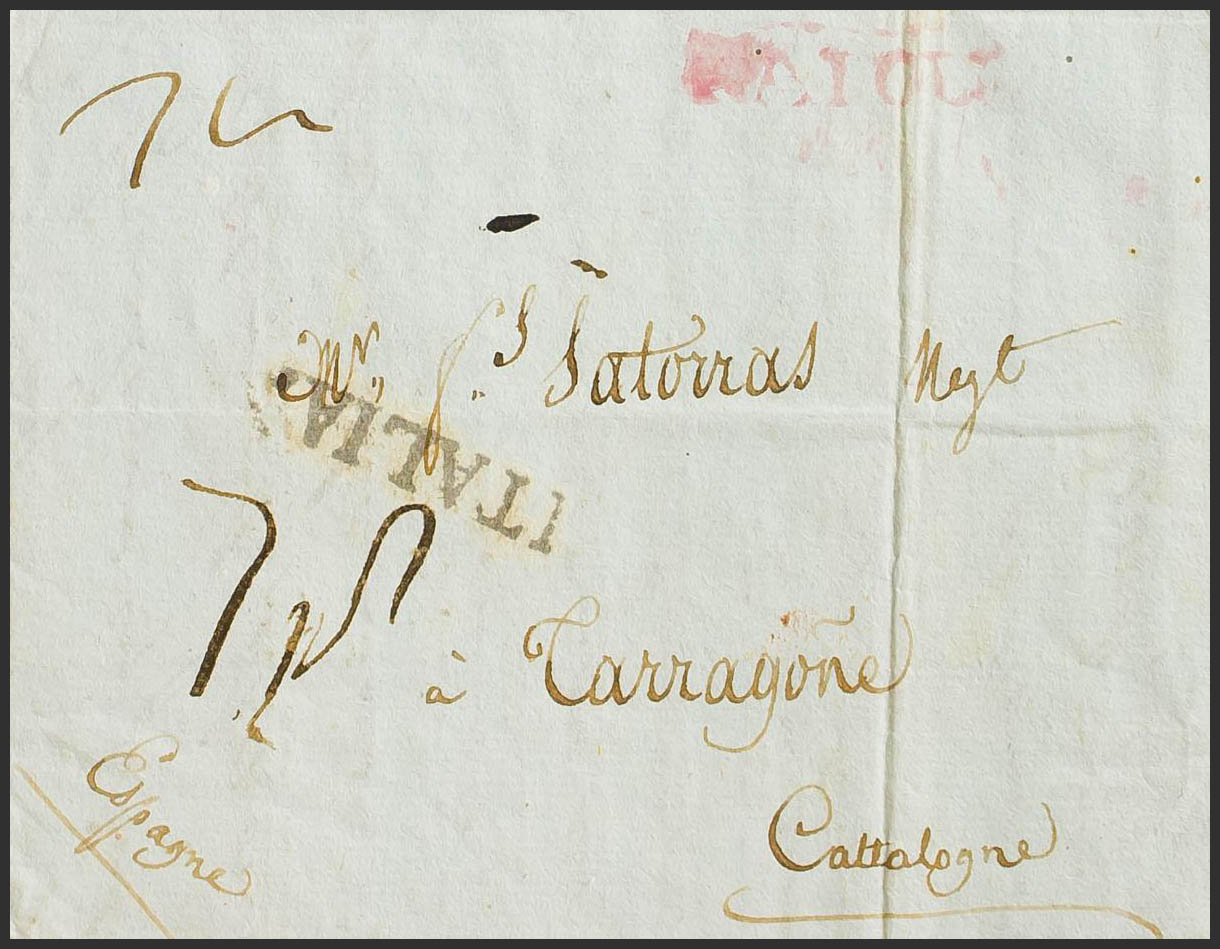1804. NAPLES (ITALY) to TARRAGONA. ITALIA mark, indicating the origin of the letter (PE87) 2004 edition. MAGNIFICENT AND VERY RARE.