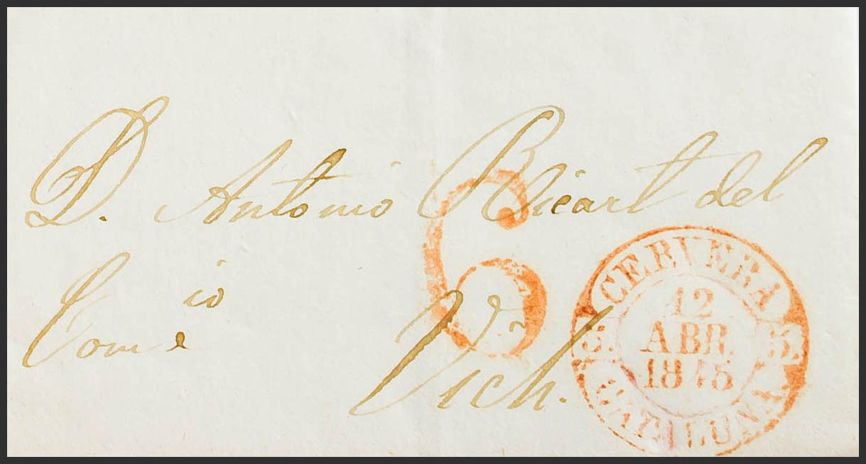 1849. CERVERA to VICH. Baeza CERVERA / CATALONIA. MAGNIFICENT.