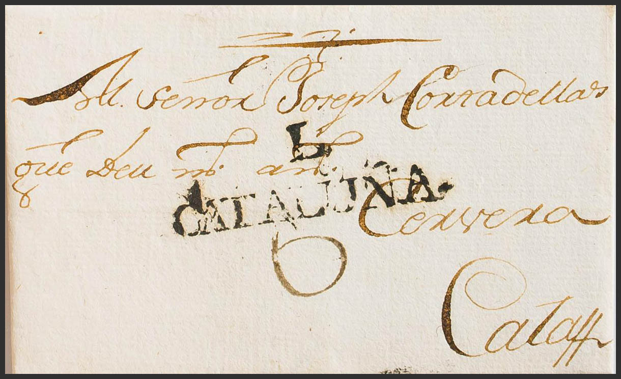 1791. CORBINS (LERIDA) to CALAF. Brand L. / CATALUÑA, from Lérida (PE7) 2004 edition. MAGNIFICENT AND RARE.