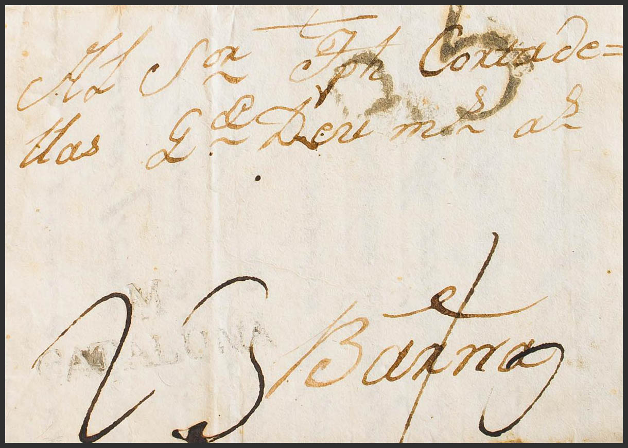 1804. MONISTROL (BARCELONA) to BARCELONA. Marca M. / CATALUÑA, from Martorell (PE4) 2004 edition. MAGNIFICENT AND EXTREMELY RARE.