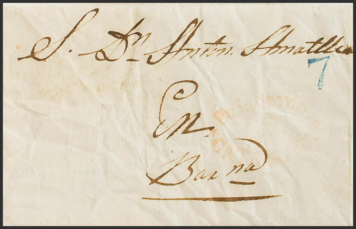 1821. PUIGCERDA to BARCELONA. PUIGCERDA brand / 32. / *CATALUÑA* (PE3) 2004 edition. MAGNIFICENT AND VERY RARE.