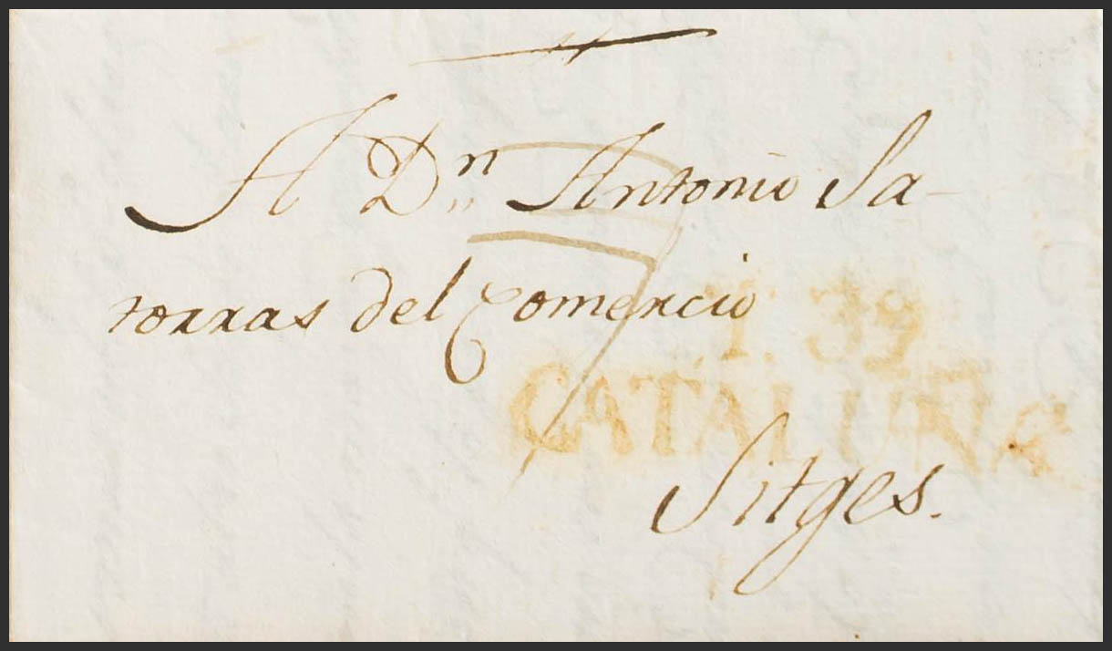 1814. TARRAGONA to SITGES. Mark T. 39. / CATALONIA (PE13) 2004 edition. MAGNIFICENT AND EXTREMELY RARE.