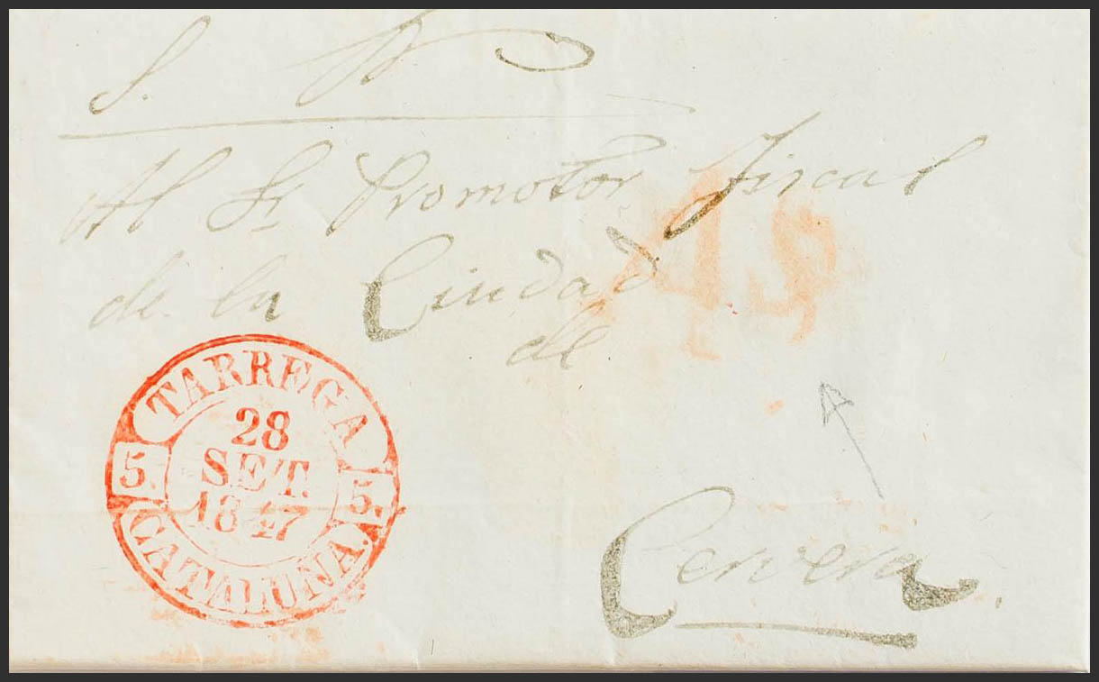 1847. VILAGRASA (BARCELONA) to CERVERA. Baeza TARREGA / CATALUÑA and mark "As", of Abono de Tárrega (PE11) edition 2004. MAGNIFICENT PRINTING AND VERY RARE.