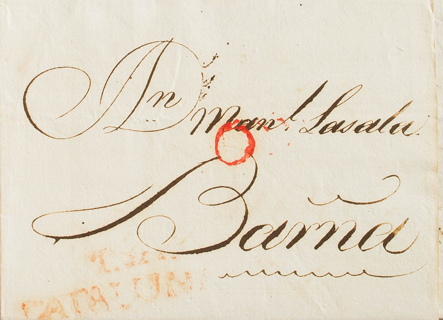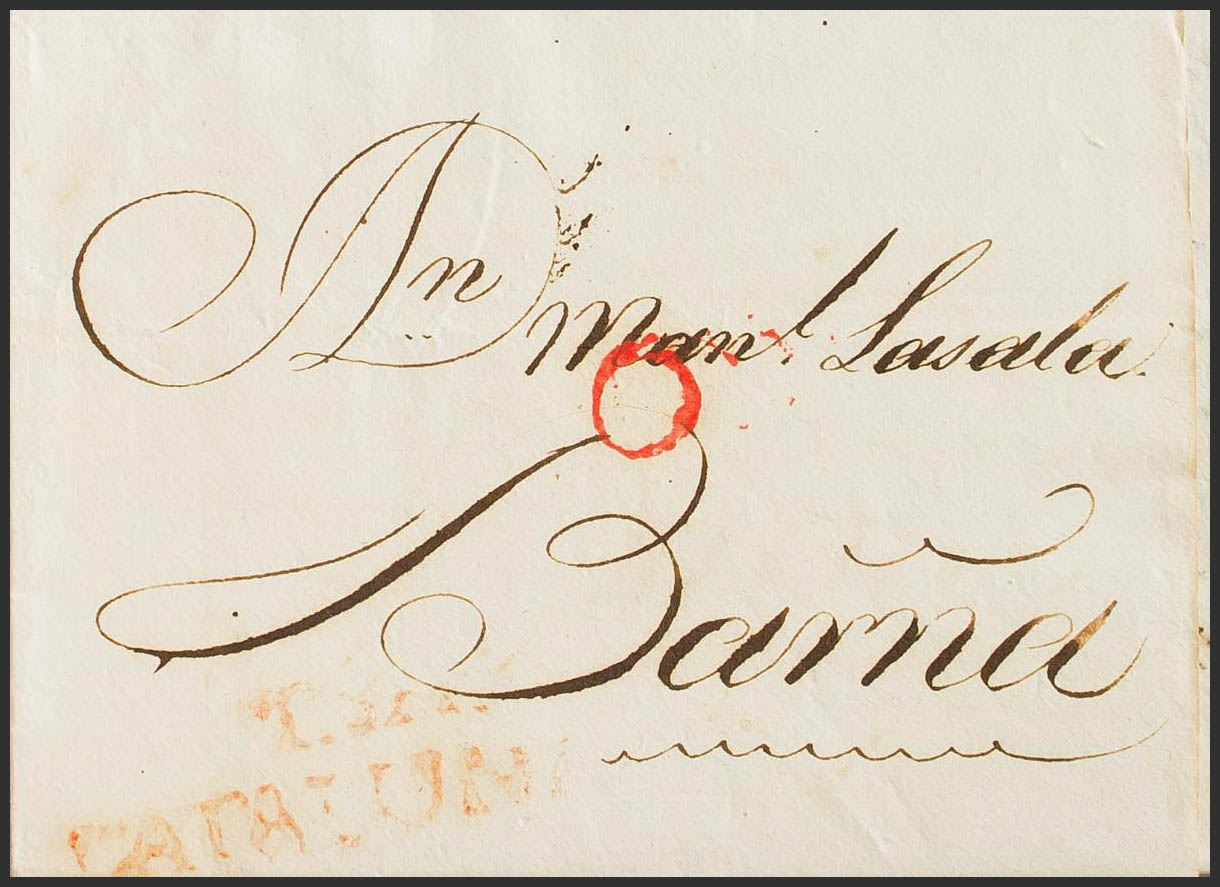 1829. TORTOSA to BARCELONA. TSA mark. / CATALONIA, in red (PE7) 2004 edition. MAGNIFICENT AND RARE.