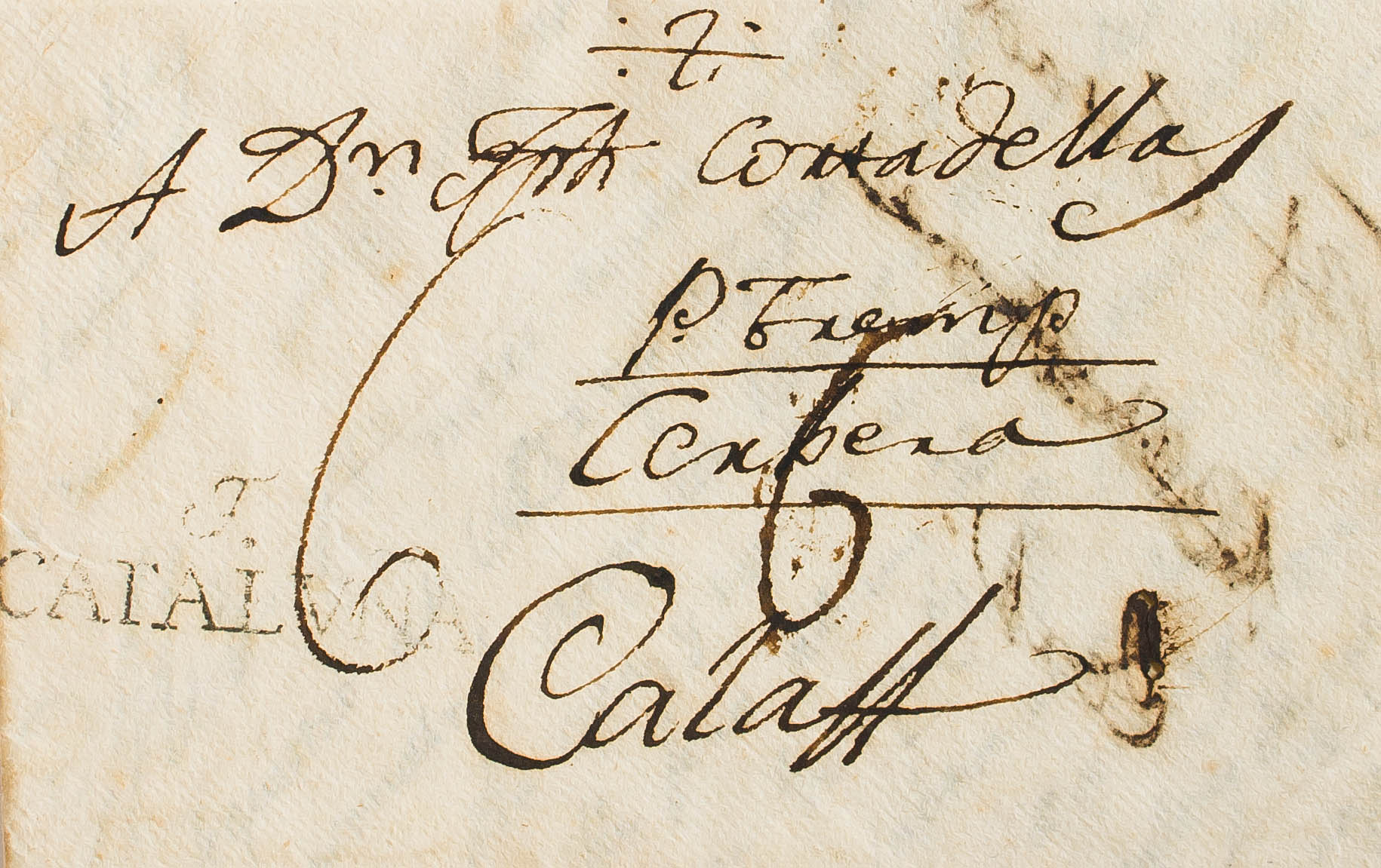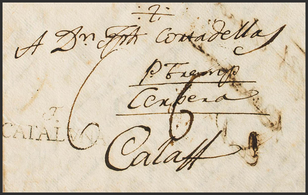 1800. ALOS (LERIDA) to CALAF. Marca T. / CATALVÑA, from Tremp (PE4) 2004 edition. MAGNIFICENT AND VERY RARE.