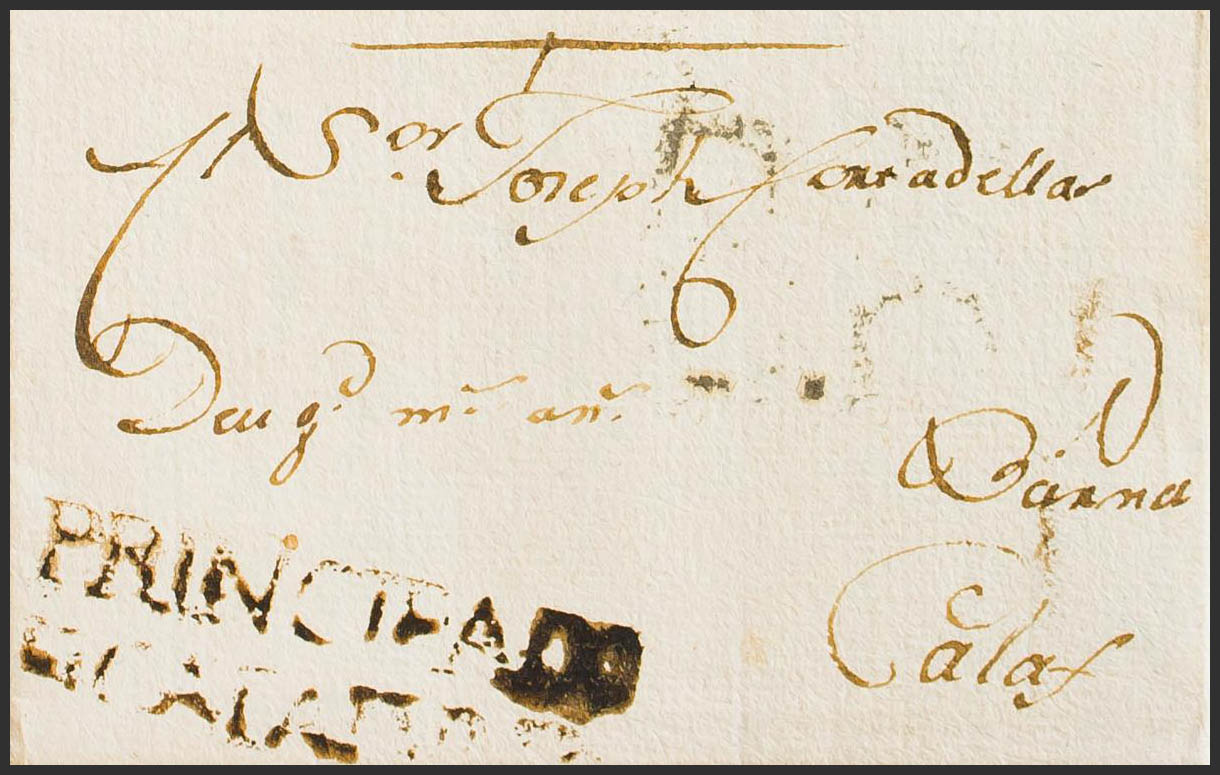 1800. RIPOLL to CALAF. Brand PRINCIPADO / DE CATALVÑA, in writing ink (PE4) 2004 edition. MAGNIFICENT AND RARE.