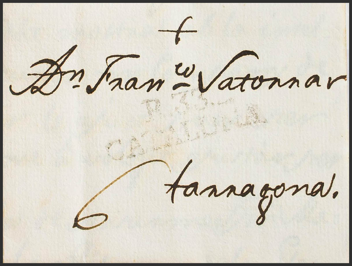 1805. REUS to TARRAGONA. Mark R. 33. / CATALUÑA, in black (PE9) 2004 edition. MAGNIFICENT.