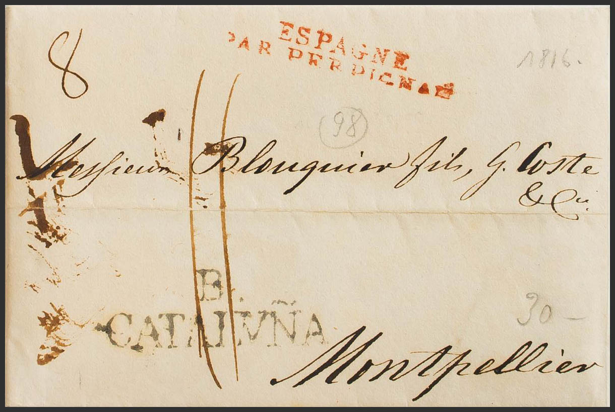 1816. BARCELONA to MONTPELLIER (FRANCE). Brand B. / CATALUÑA, in black (PE46) 2004 edition. MAGNIFICENT.