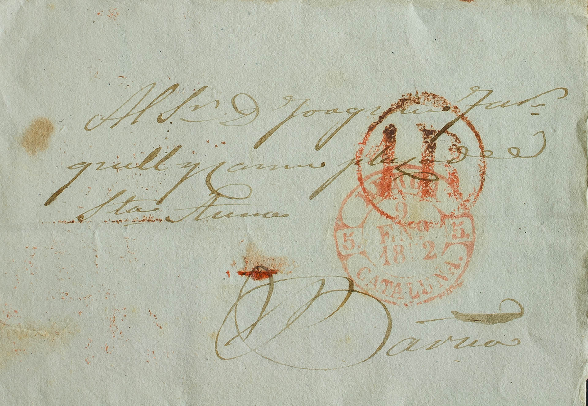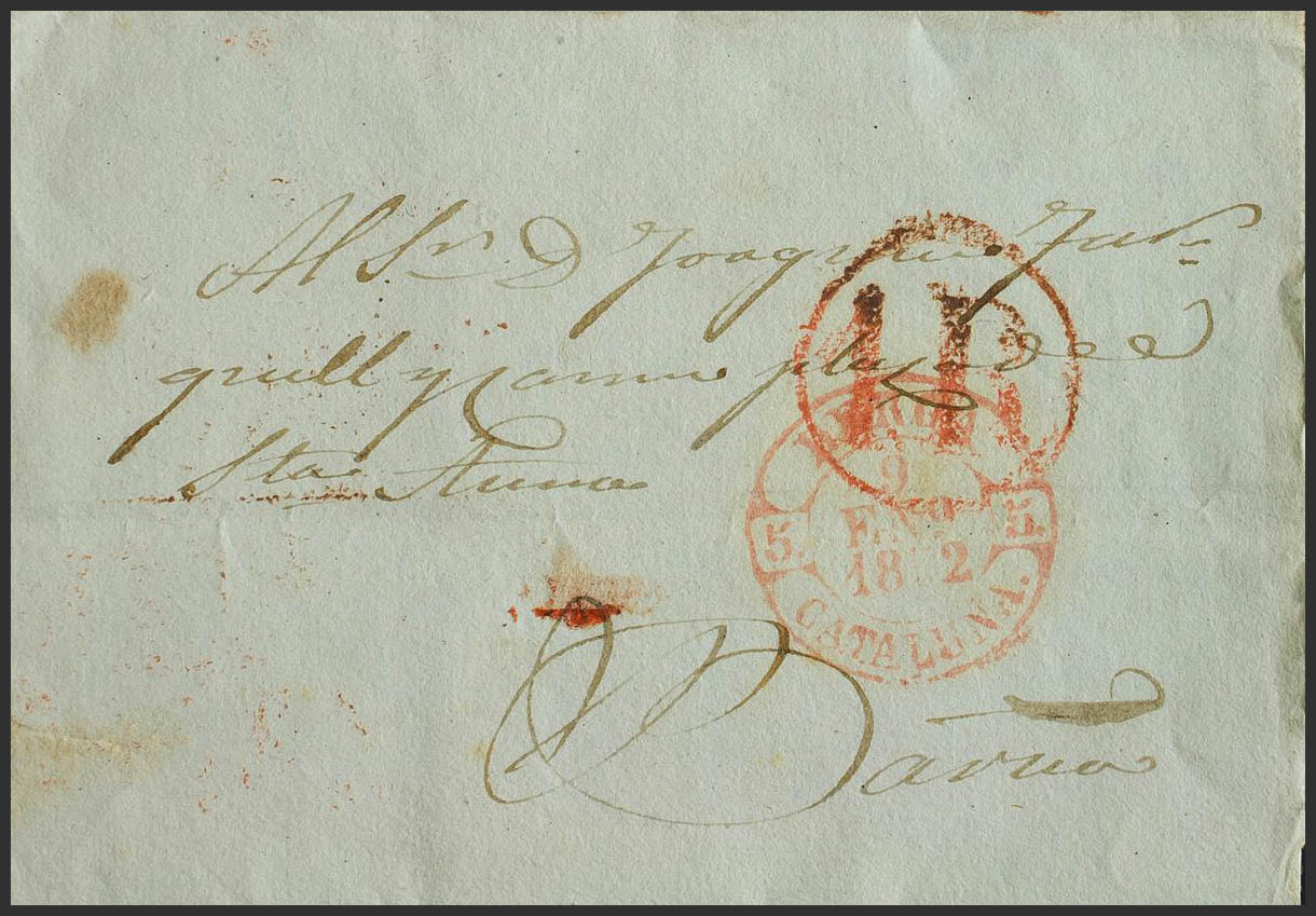 1852. BERGA to BARCELONA. Baeza BERGA / CATALONIA, in red. MAGNIFICENT.
