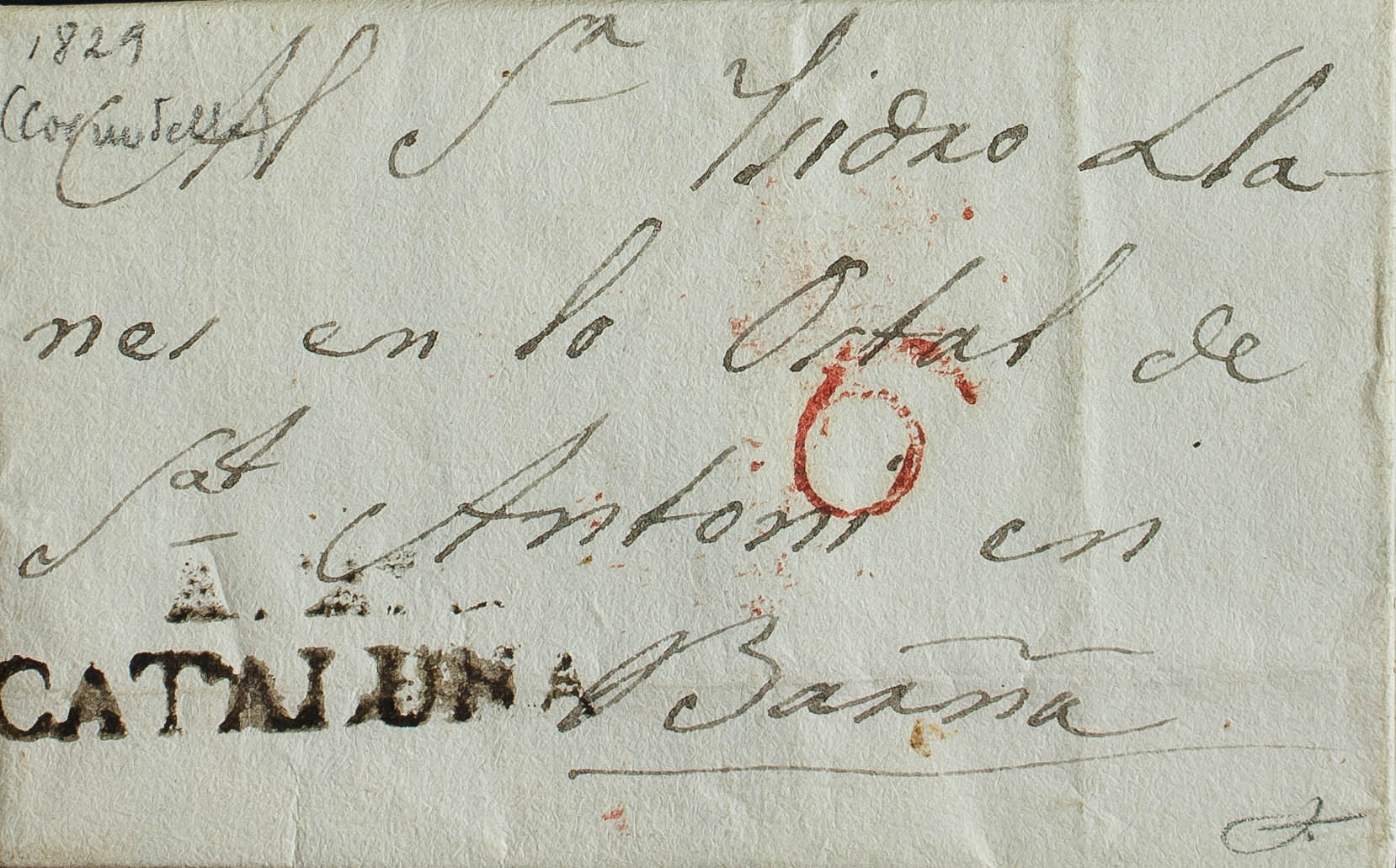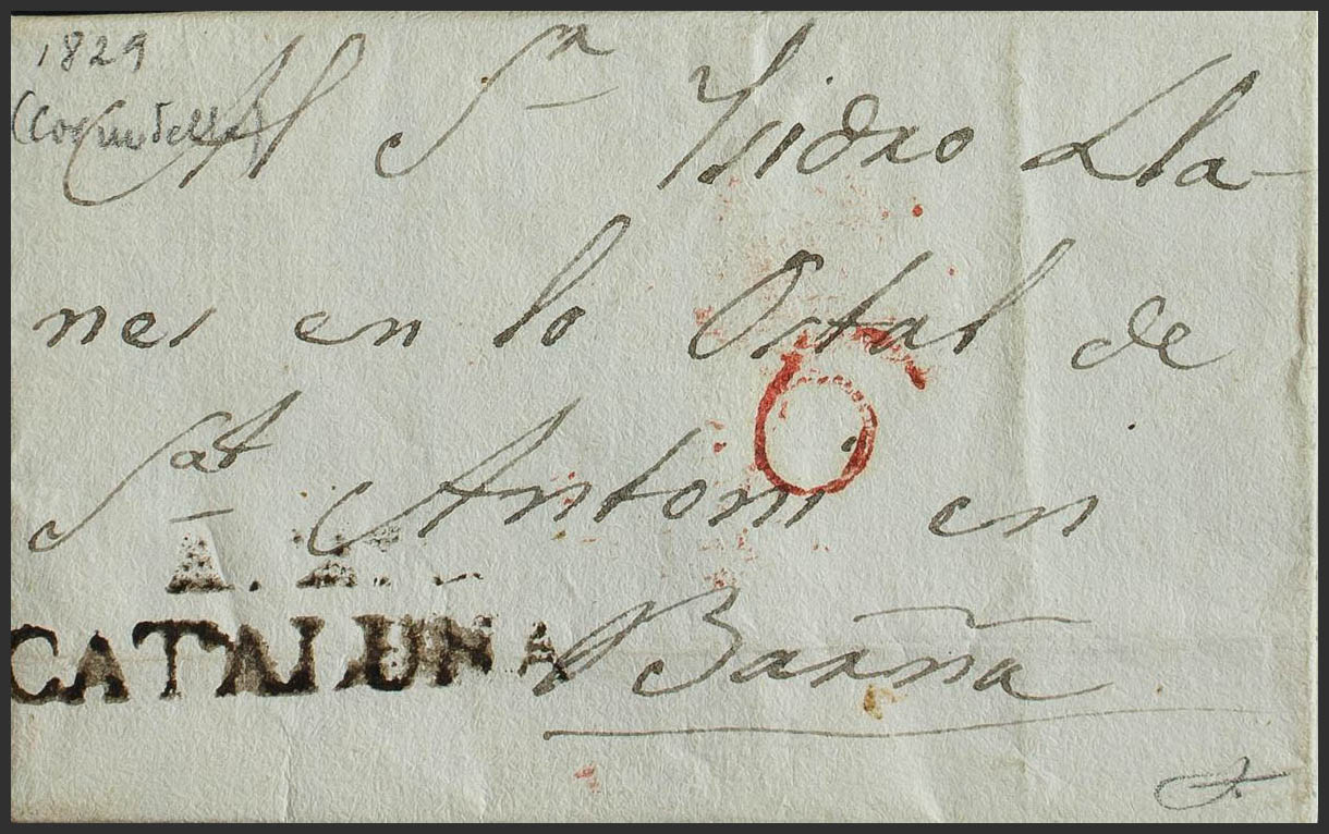 English 1829. CORNUDELLA (TARRAGONA) to BARCELONA. Brand A.2º / CATALUÑA, in Alforja writing ink (PE2) edition 2004. MAGNIFICENT.