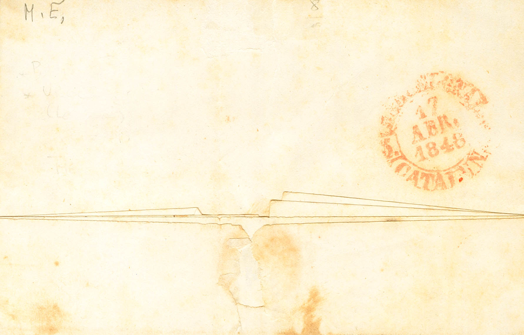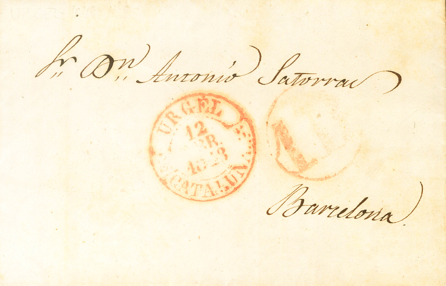 |ABOUT|1848. SEO DE URGEL (LERIDA) to BAGoodELONA. Baeza URGEL / CATALONIA, in red. MAGNIFICENT.