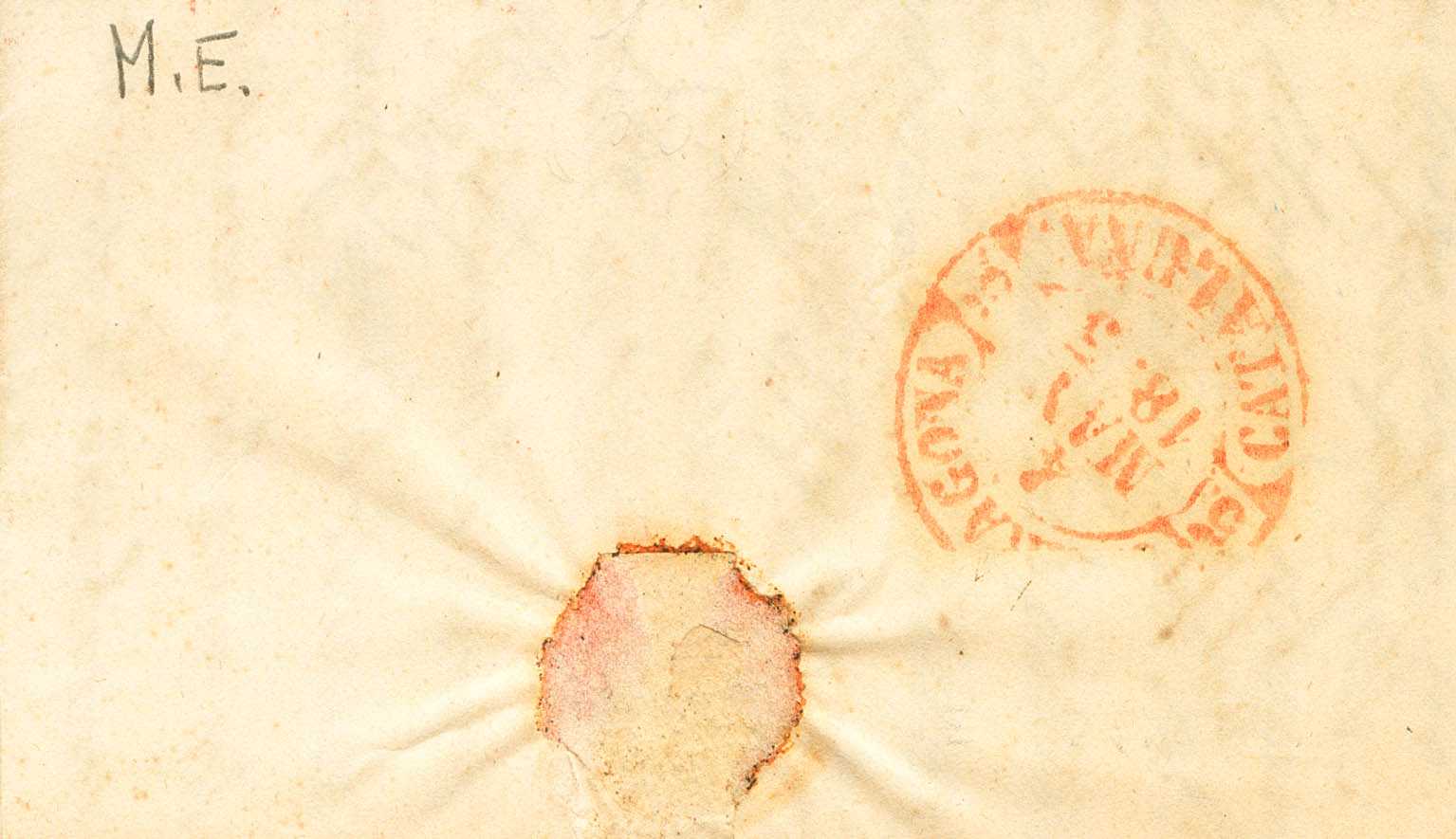 English |ABOUT|1853. OLOT (GERONA) to TARRAGONA. Baeza OLOT / CATALONIA, in red. MAGNIFICENT PRINTING.