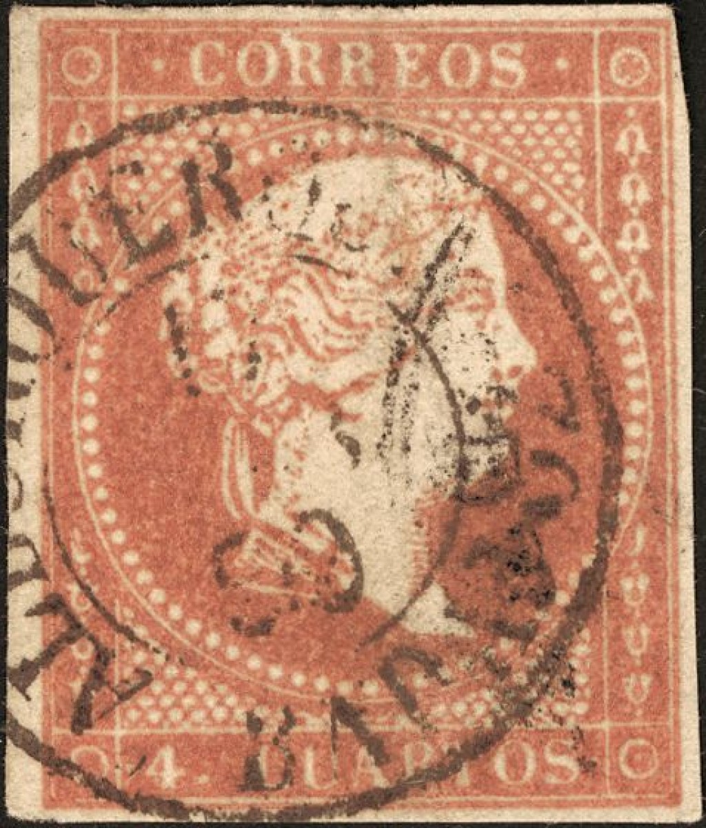48. 1856. 4 red cuartos . Postmark ALBURQUERQUE / BADAJOZ (Type I).