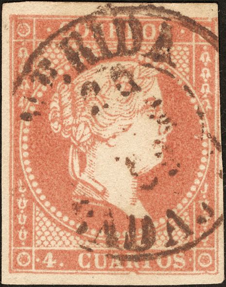 English 48. 1856. 4 red cuartos . Postmark MERIDA / BADAJOZ (Type I).