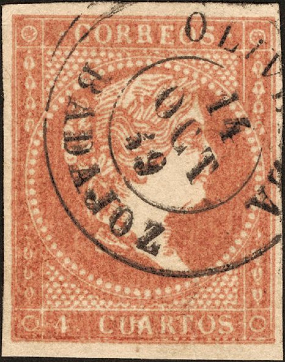 48. 1856. 4 red cuartos . Postmark OLIVENZA / BADAJOZ.