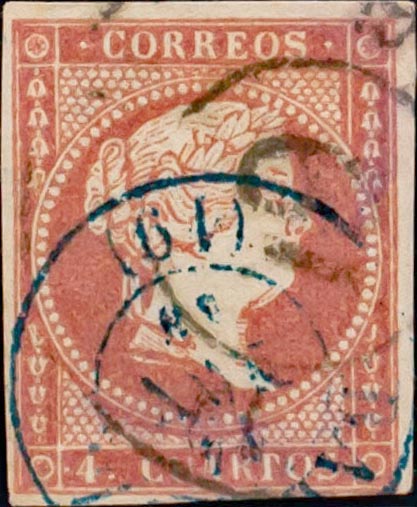 48. 1855. 4 cuartos red. Mixed postmark BADAJOZ / (19) and R.CARRETA Nº19. MAGNIFICENT.
