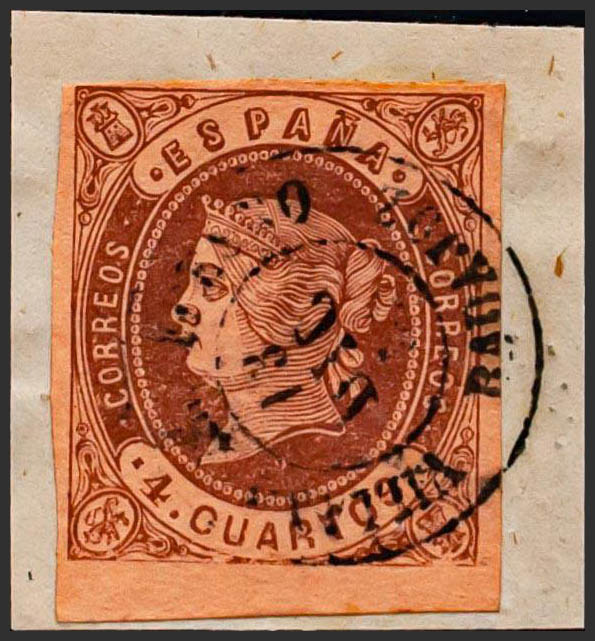 58. 1862. 4 cuartos chestnut. Postmark VILLANª DEL FRESNO / BADAJOZ. BEAUTIFUL AND RARE.