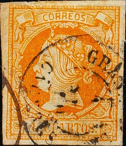 52. 1860. 4 cuartos yellow. Postmark GRANADILLA / CACERES. BEAUTIFUL AND RARE.
