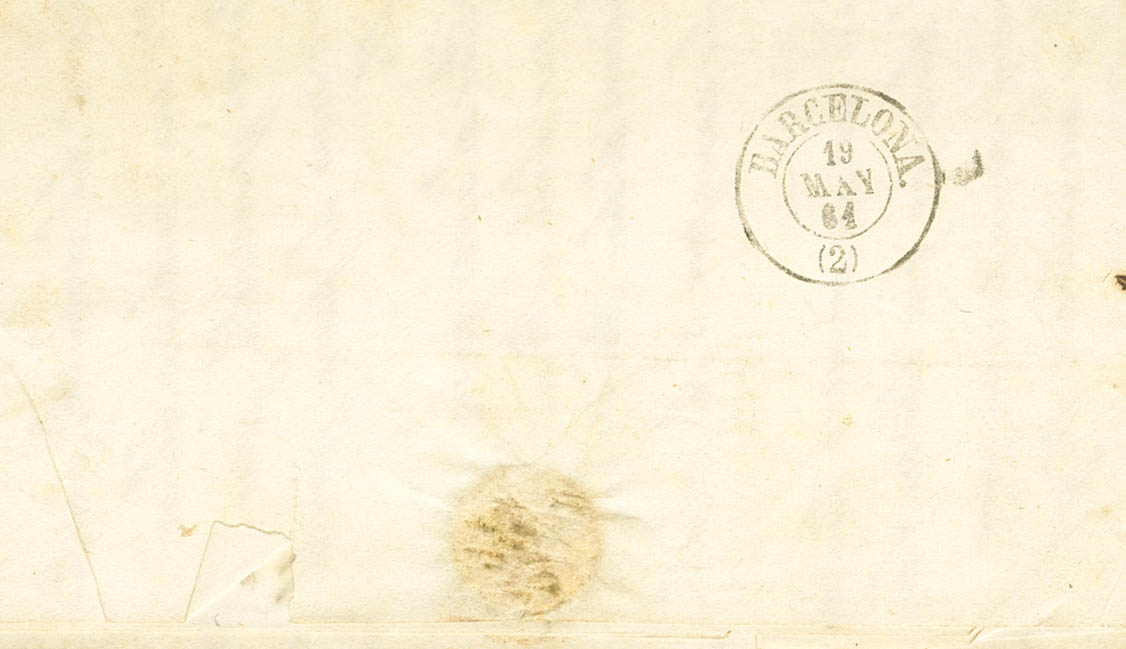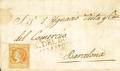 |ENVELOPE| 52. 1861. 4 yellow quarters. CASTUERA to BAGoodELONA. Postmark CASTUERA / BADAJOZ, on the front pre-philatelic mark CABª DEL BUEY / ESTREMADURA / BAXA. MAGNIFICENT.