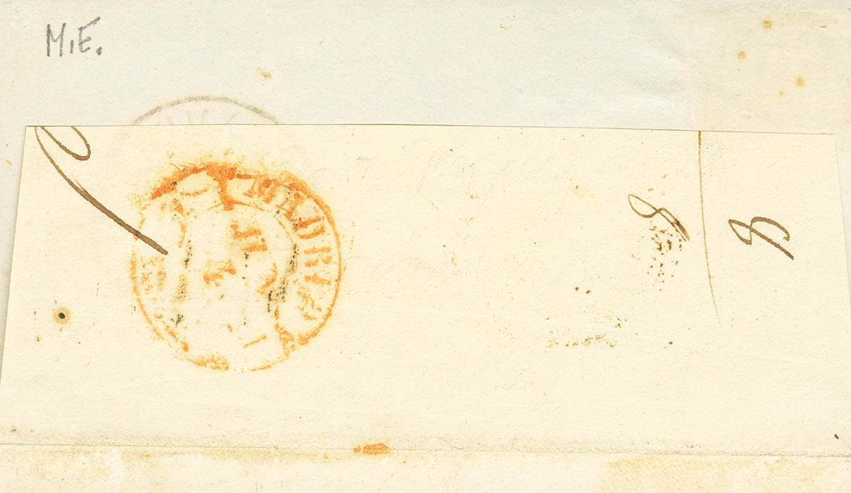 |ABOUT| 12. 1852. 6 pink quarters. Front (with flap and ending on the back) from ZALAMEA DE LA SERENA to MADRID. On the front Baeza ZALAMEA / ESTREM.B. MAGNIFICENT AND RARE.