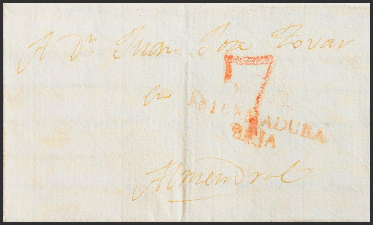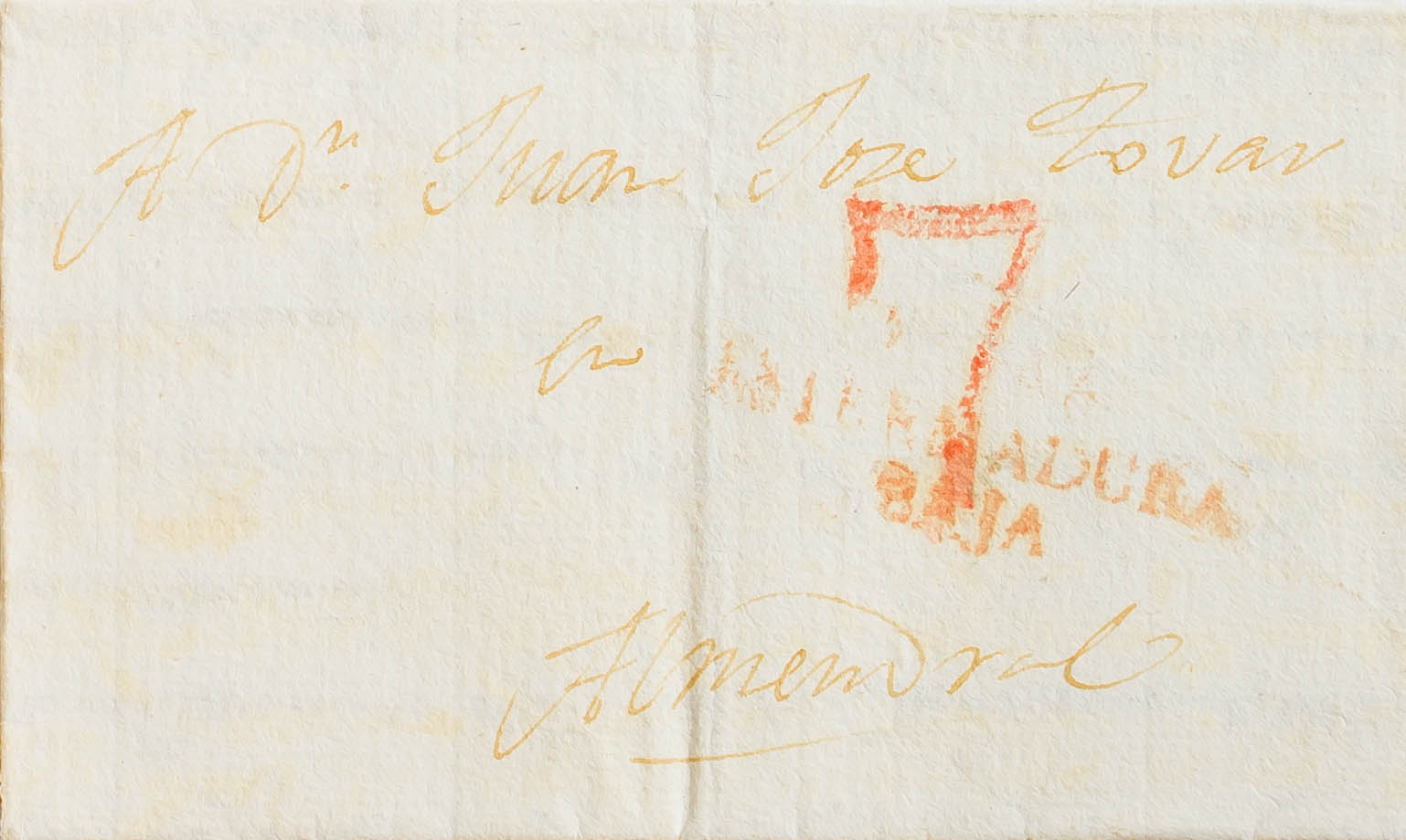 1826. CROP to ALMENDRAL. Brand ZAFRA / ESTRMADURA / BAJA (PE6) 2004 edition (the upper part is weakly stamped). BEAUTIFUL AND RARE.