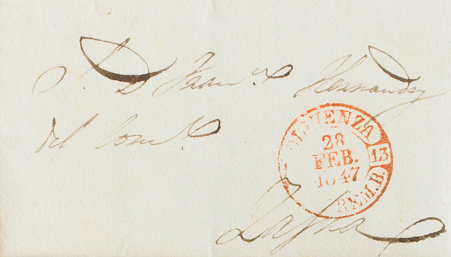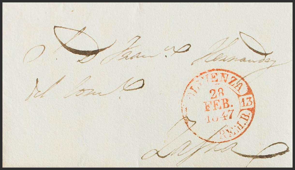 English 1847. OLIVENZA to ZAFRA. Baeza OLIVENZA / ESTREM.B., in red. MAGNIFICENT.