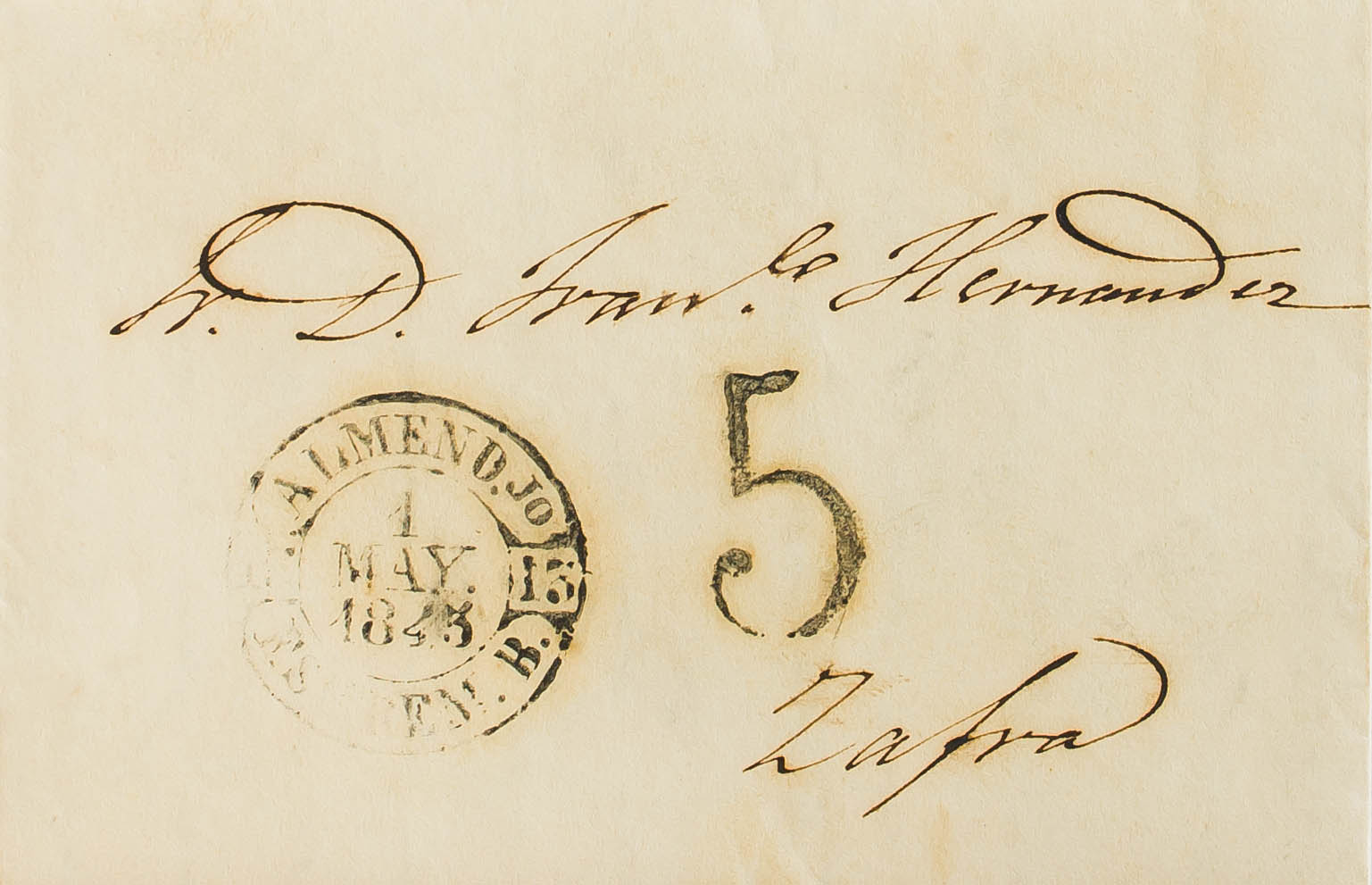 English 1845. ALMENDRALEJO to ZAFRA. Baeza ALMENDJO / ESTREM. B, in black. MAGNIFICENT PRINT.