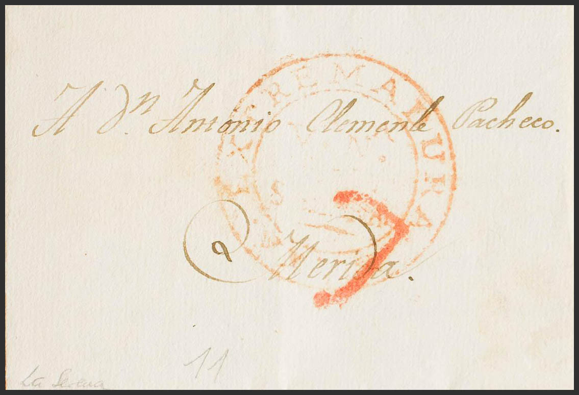 1831. VILLANUEVA DE LA SERENA to MERIDA. Brand EXTREMADURA / Vª Nª / DE LA / SERENA / BAXA (PE4) edition 2004. MAGNIFICENT.