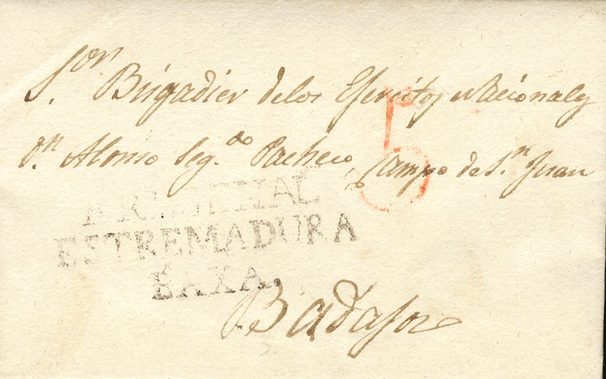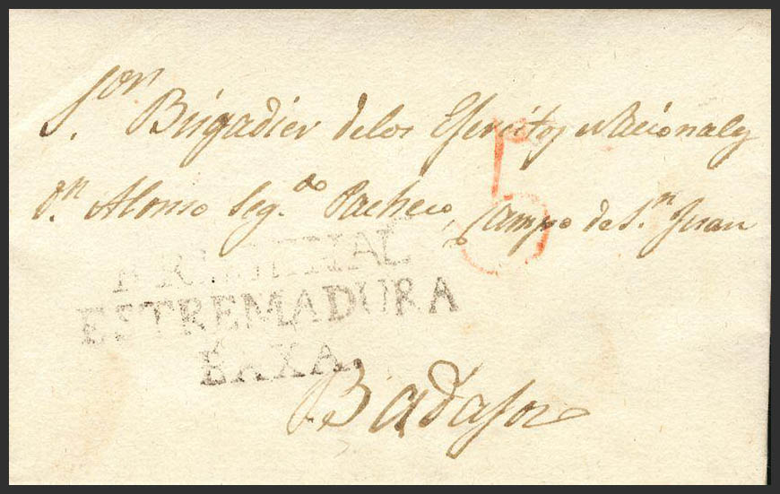 1838. FREGENAL to BADAJOZ. Brand FREGENAL / ESTREMADURA / BAXA (PE 2) edition 2004. MAGNIFICENT.