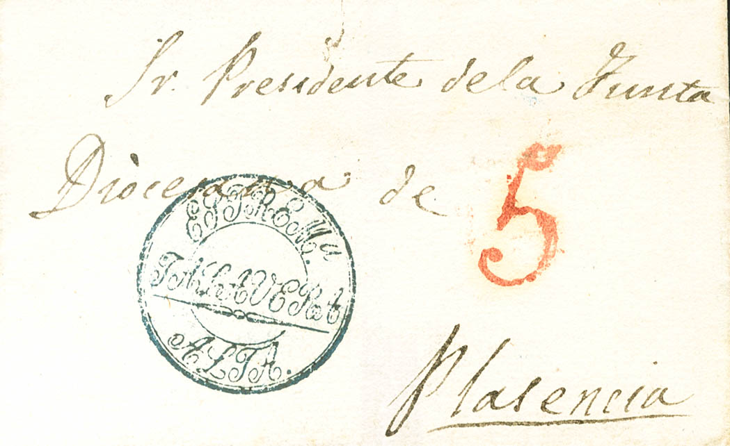 |ABOUT|(1838ca). TALAVERA DE LA REINA (TOLEDO) to PLASENCIA. ESTREMª / TALAVERA / ALTA mark, in blue (PE7) 2004 edition. MAGNIFICENT AND VERY RARE, SPECTACULAR PRINTING.